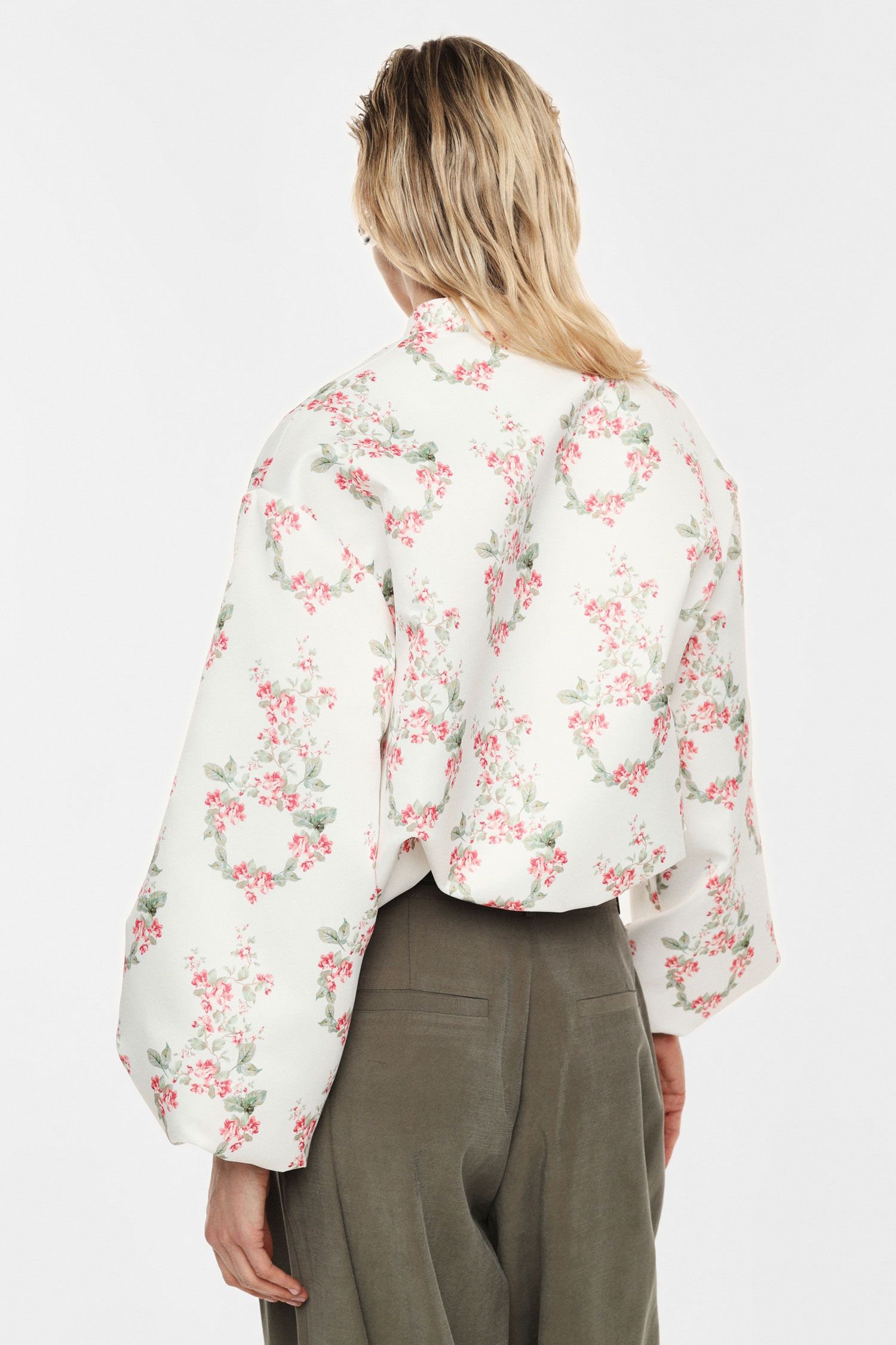 O estampado floral distribuído de forma harmoniosa cria um efeito visual leve e diferenciado, perfeito para looks de meia-estação com personalidade.