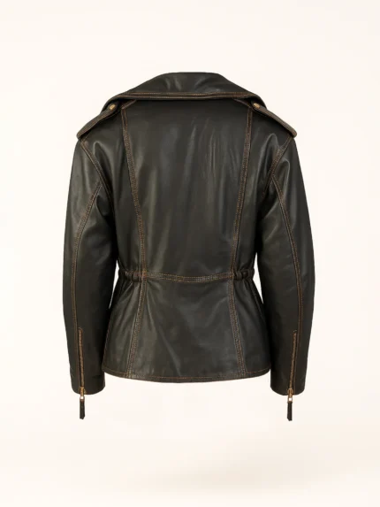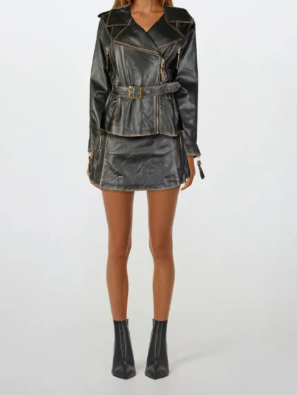 CASACO EM PELE CASTANHO COM CINTO E FECHOS METÁLICOS SAHOCO