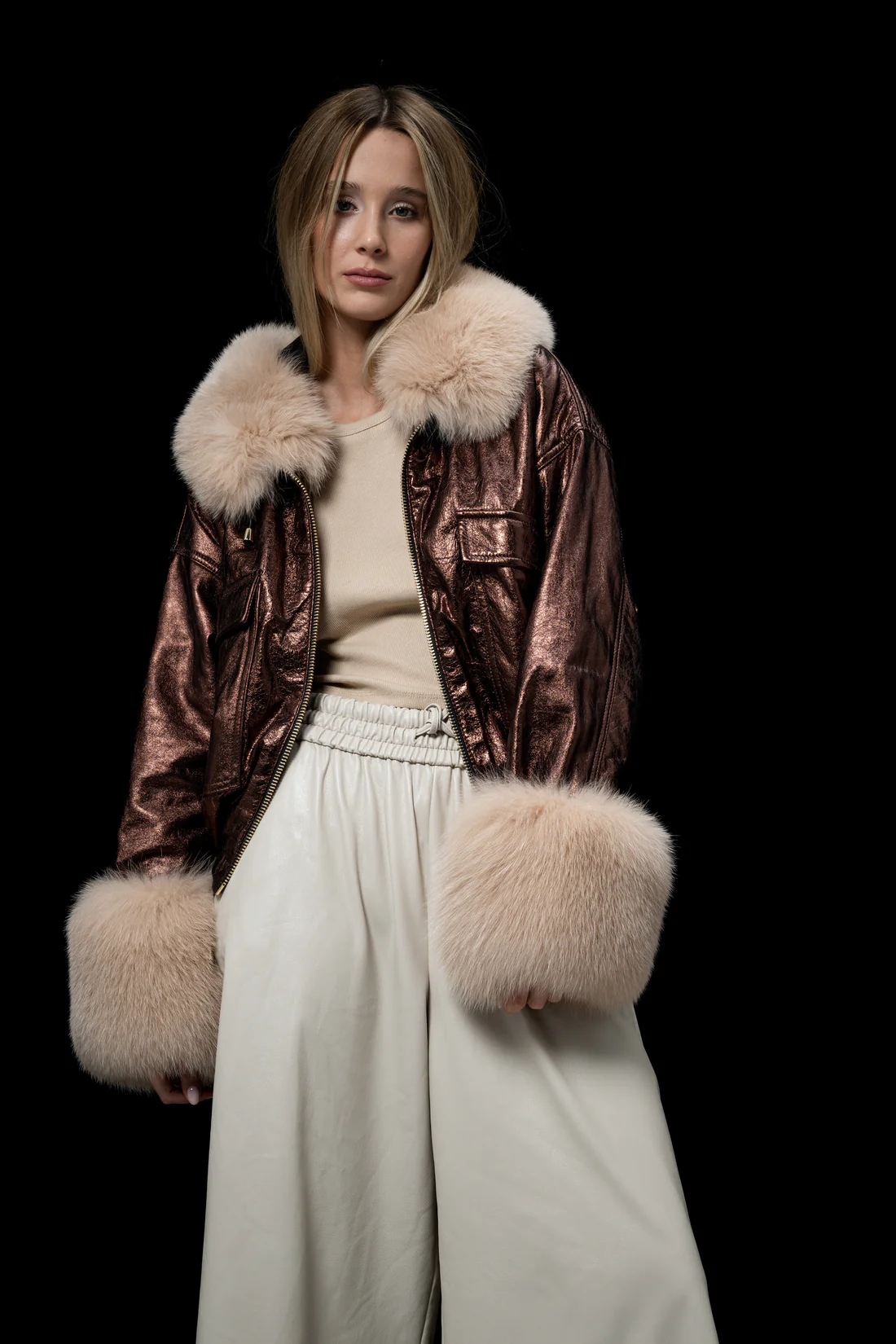 CASACO METÁLICO COM GOLA E PUNHOS EM PELO FLO&CLO