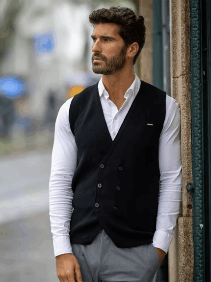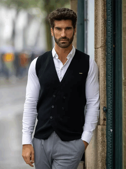 CASACO TRICOT CANELADO COM BOLSO PRETO ZOLF