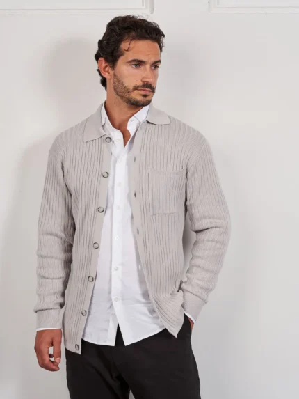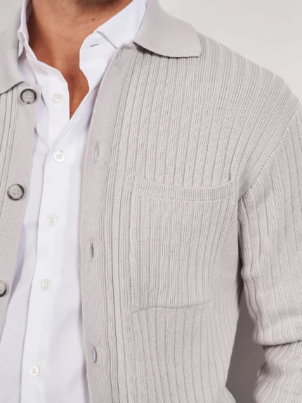 CASACO TRICOT CANELADO COM BOLSO CINZA ZOLF