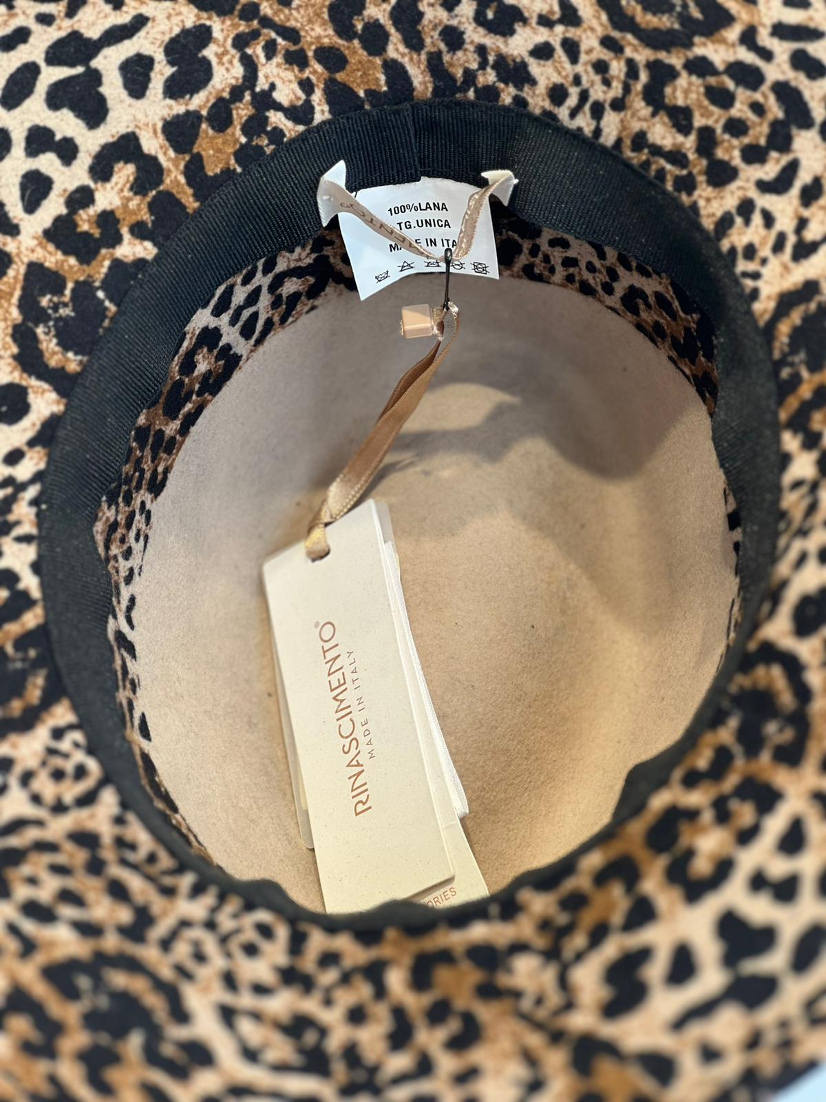 Irreverente, elegante e cheio de personalidade — este chapéu Rinascimento em padrão animal print é a escolha certa para quem gosta de marcar presença com estilo. Produzido em feltro suave e estruturado, apresenta copa firme e aba média, garantindo um ajuste confortável e um visual sofisticado.