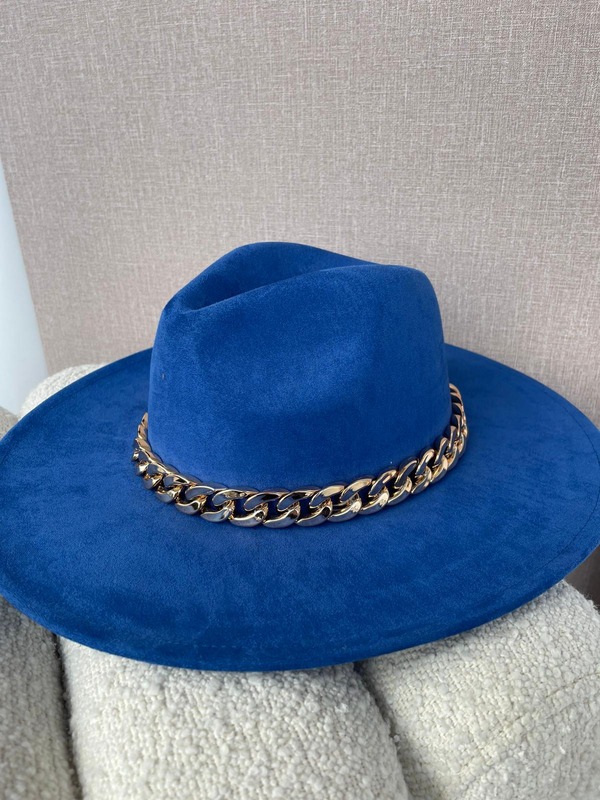 CHAPÉU AZUL COM CORRENTE DOURA