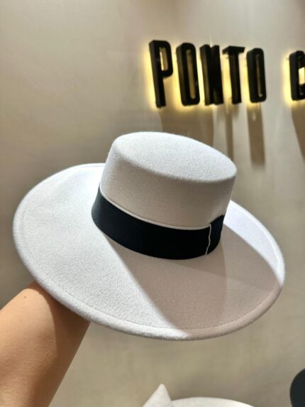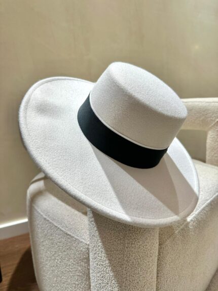O modelo de aba larga e copa reta transmite sofisticação e personalidade, enquanto a fita dupla em gorgorão com detalhe em contraste acrescenta um toque contemporâneo e distinto.