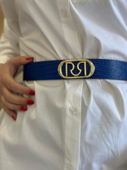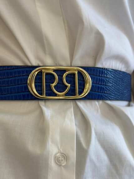 CINTO AZUL TEXTURADO COM FIVELA DOURADA RINASCIMENTO