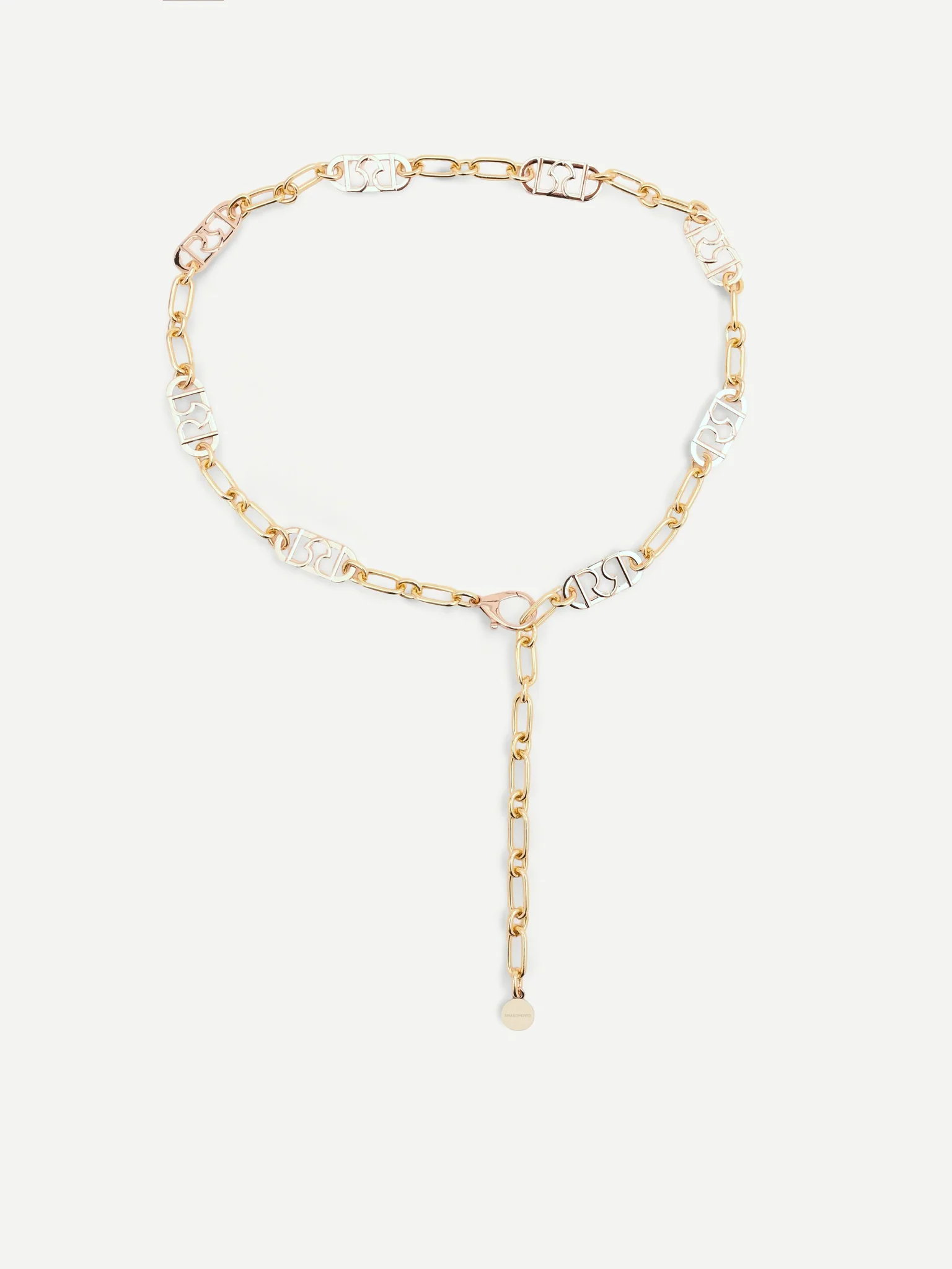 Cinto dourado de elos da Rinascimento, uma peça marcante e sofisticada, ideal para acrescentar um toque luminoso ao look. Confeccionado em metal com acabamento dourado, apresenta uma estrutura de elos delicados e flexíveis, enriquecida ao longo de toda a extensão por aplicações circulares com efeito brilhante, que criam um acabamento elegante e cheio de presença.