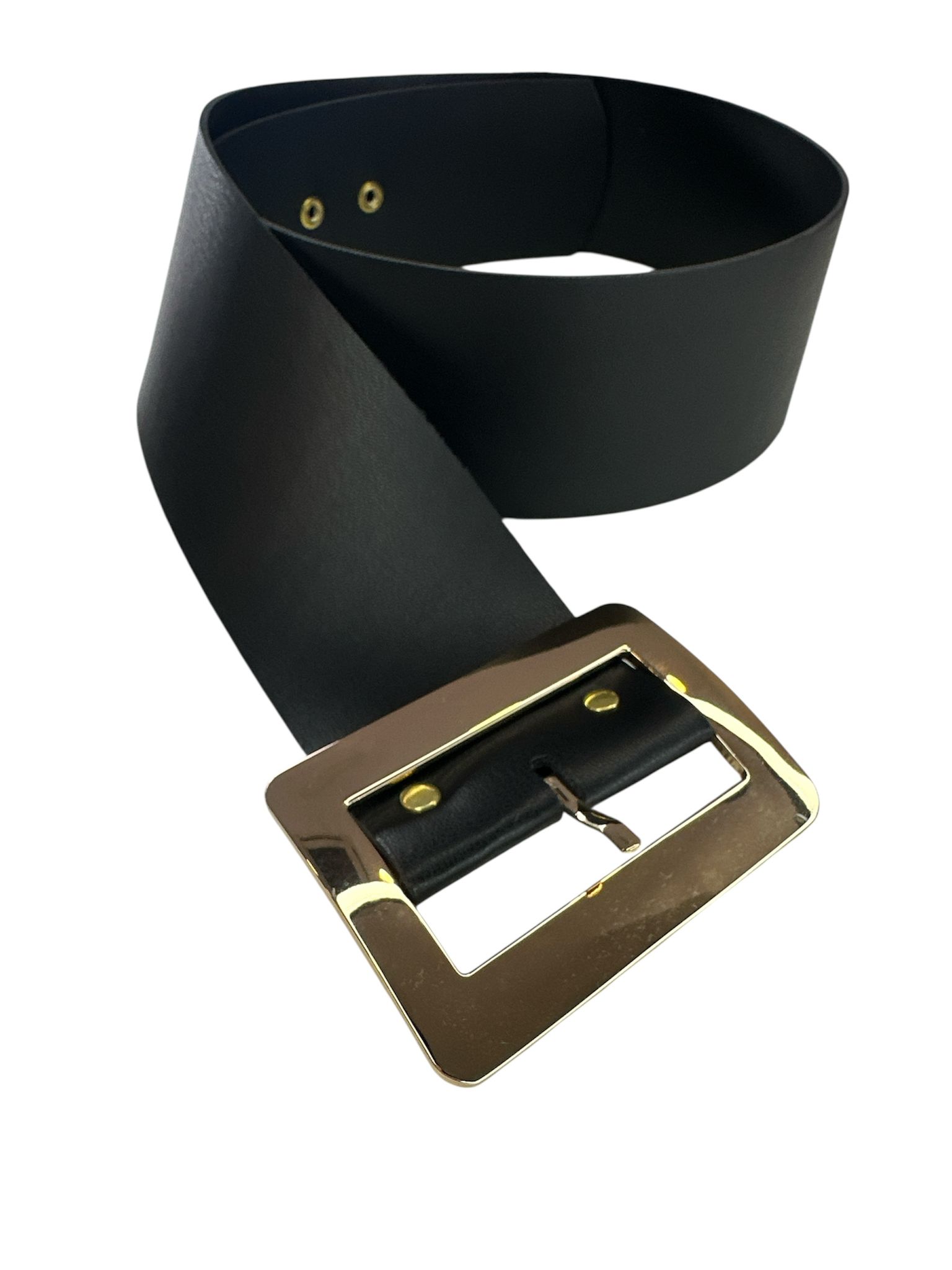 O destaque fica por conta da fivela dourada retangular, que acrescenta um ar contemporâneo e refinado, contrastando de forma perfeita com o preto profundo da faixa. O design minimalista e versátil torna-o uma escolha segura para marcar a cintura de vestidos, blazers ou calças de alfaiataria.