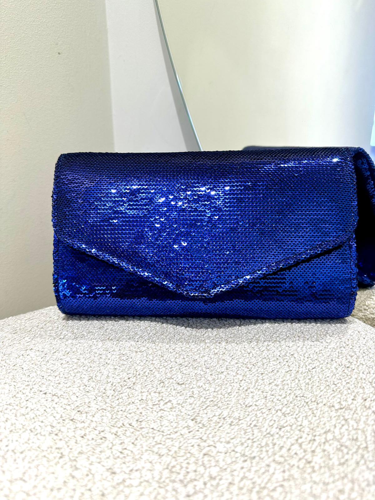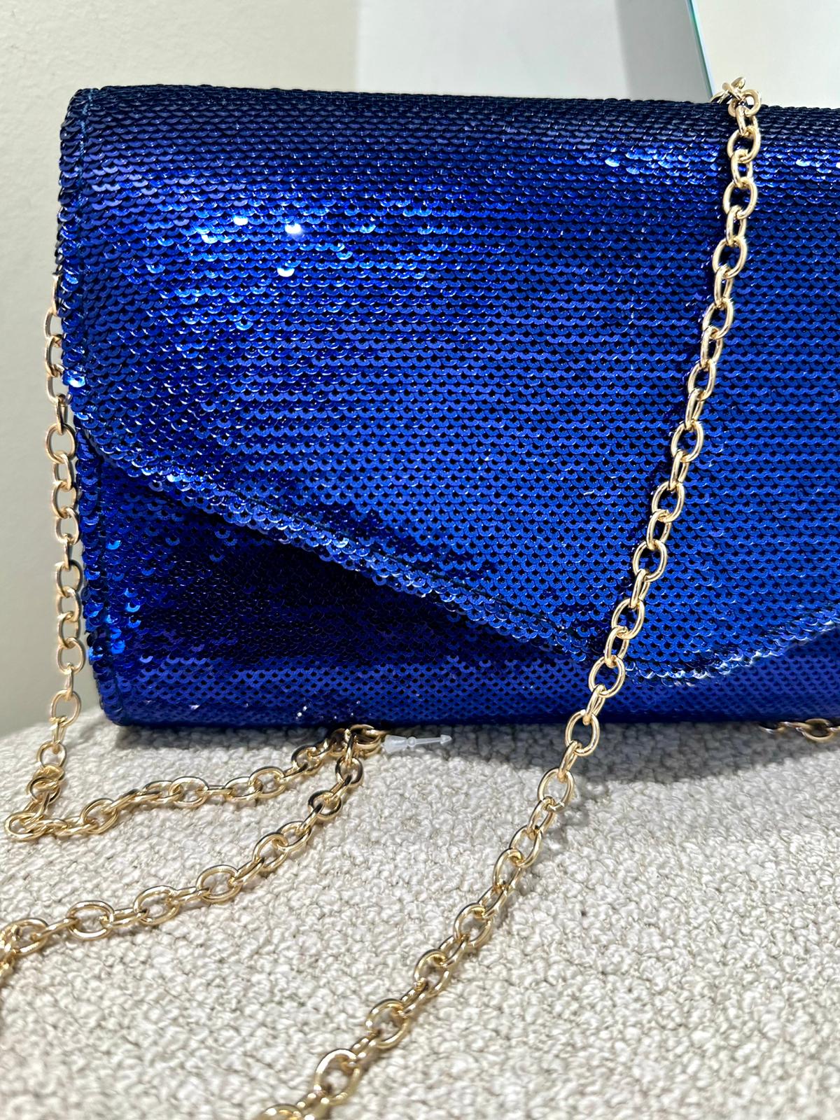 CLUTCH ENVELOPE DE LANTEJOULAS AZUL-MARINHO PONTO CHIC