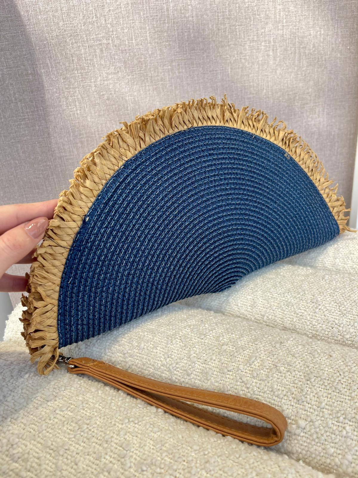 CLUTCH MEIA LUA AZUL PALHA PONTO CHIC