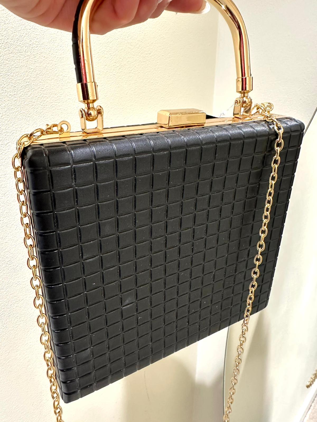 CLUTCH PRETA ESTRUTURADA COM PEGA DOURADA PONTO CHIC
