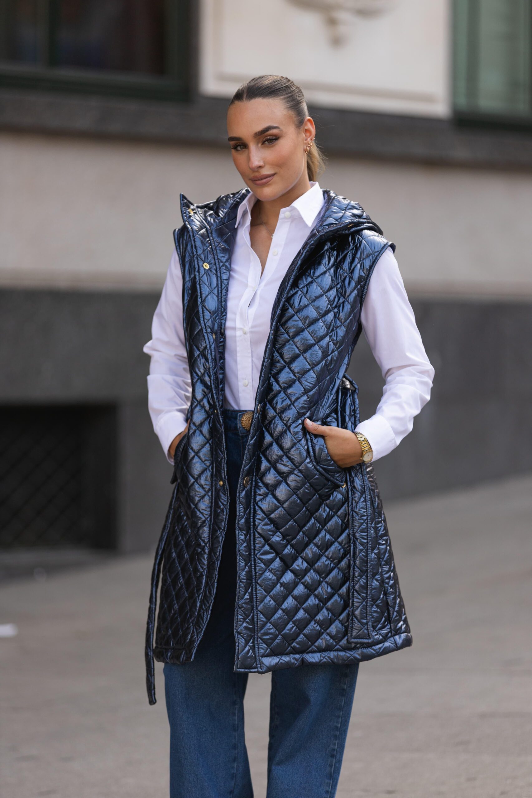 Ideal para sobrepor a malhas, camisolas ou até vestidos, este colete combina proteção e elegância, sendo indispensável para coordenados urbanos e descontraídos com um toque sofisticado.