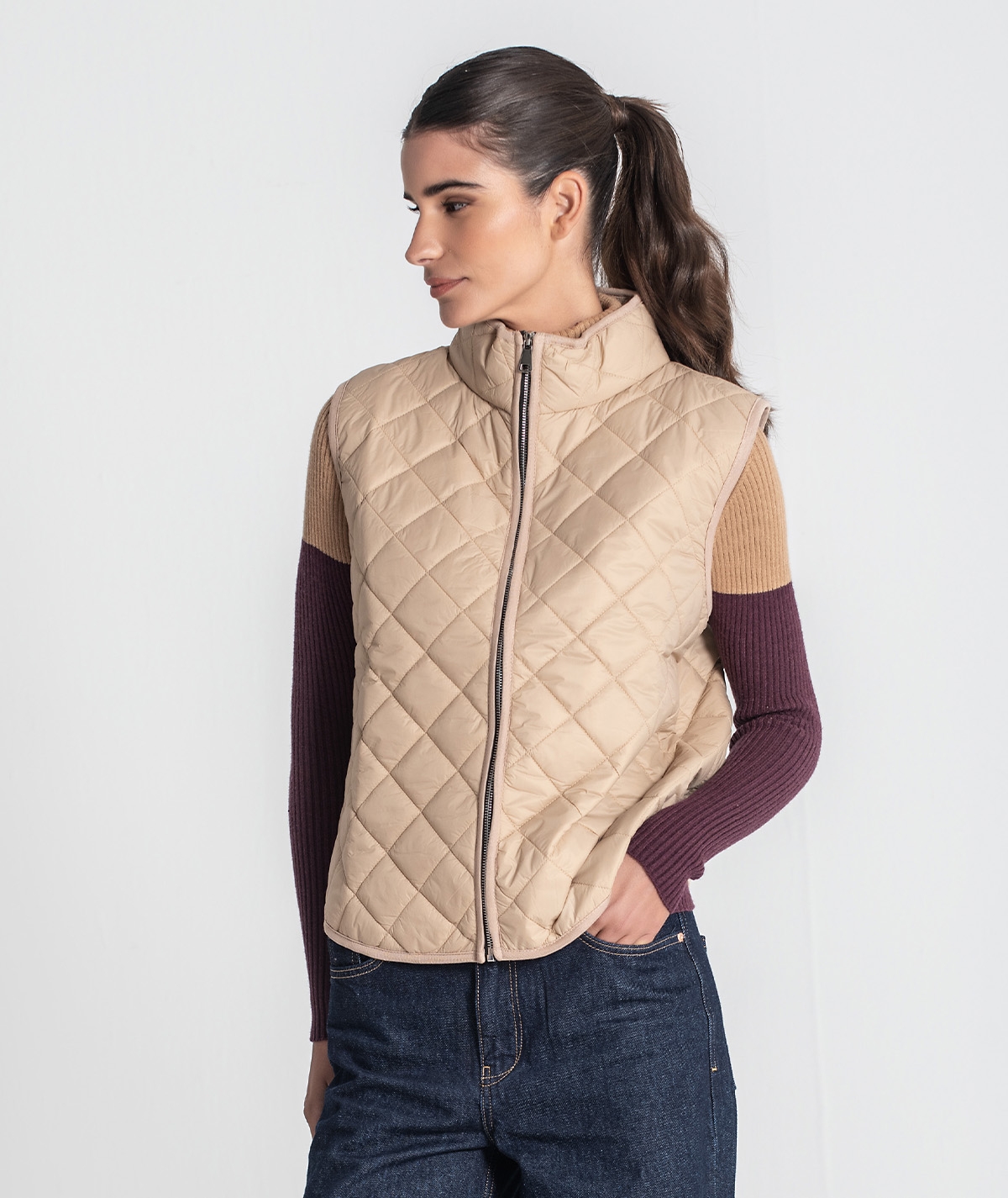 O colete acolchoado da Ruga conjuga leveza, conforto e elegância num design contemporâneo e versátil. Confecionado em 100% poliéster, é ideal para usar nos dias de transição, garantindo isolamento térmico e liberdade de movimento.