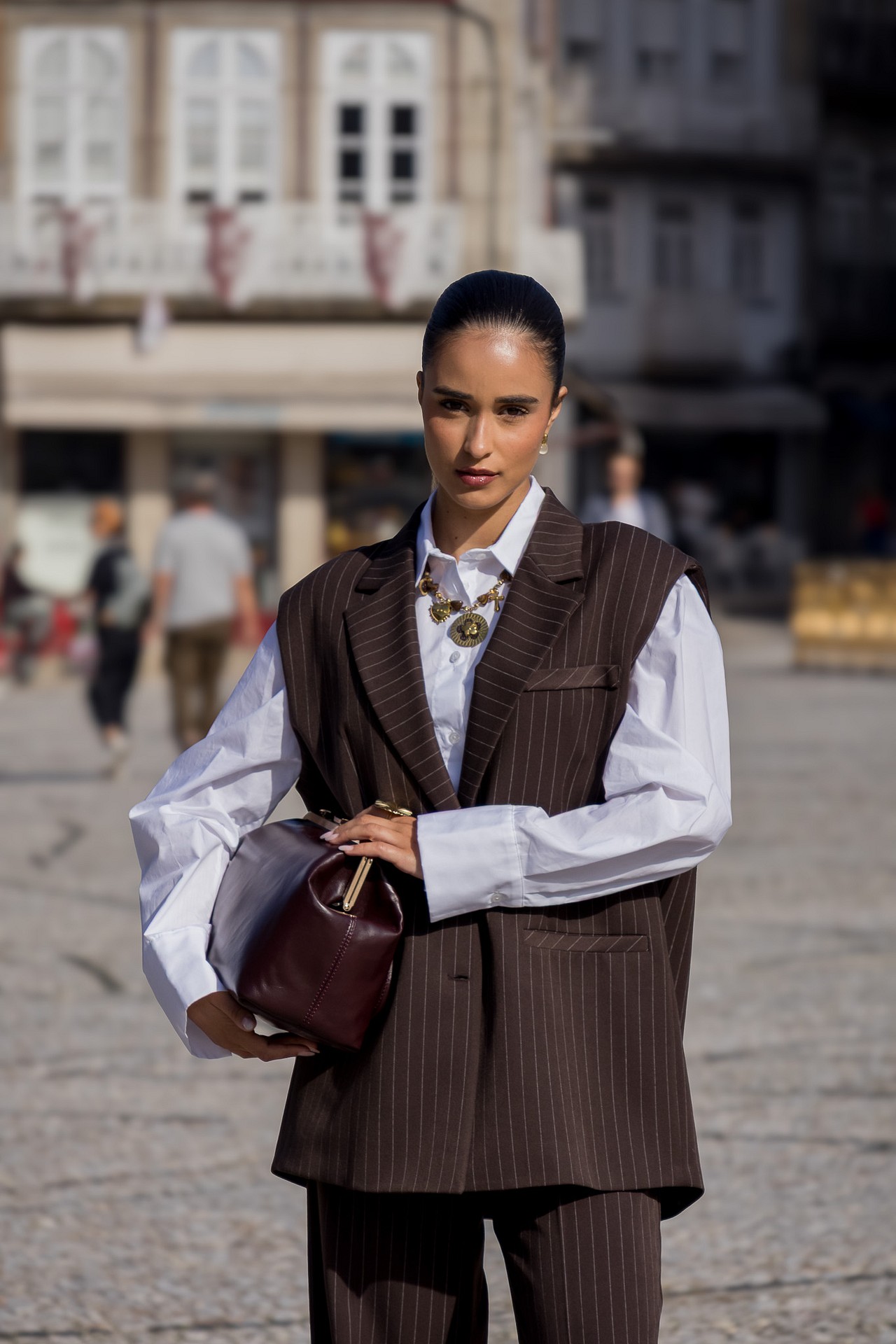 O colete castanho Imperial traz uma abordagem moderna ao estilo clássico de alfaiataria. Confeccionado em 78% poliéster, 18% viscose e 4% elastano, oferece estrutura, conforto e um caimento impecável, mantendo a elegância que caracteriza a marca italiana.