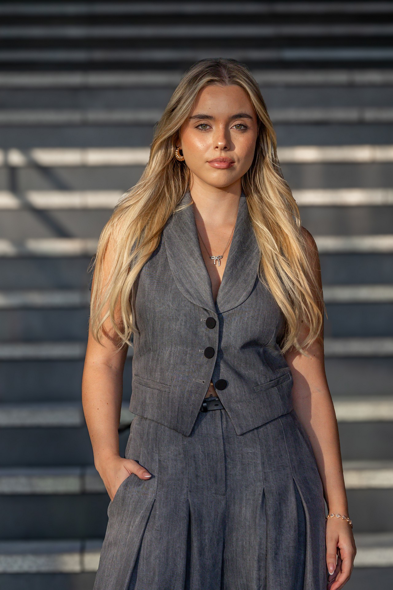 O colete cinzento da marca Imperial é uma peça-chave para quem procura elegância moderna e versatilidade no dia a dia. Produzido em 100% poliéster, garante resistência, conforto e um caimento estruturado que valoriza qualquer coordenado.