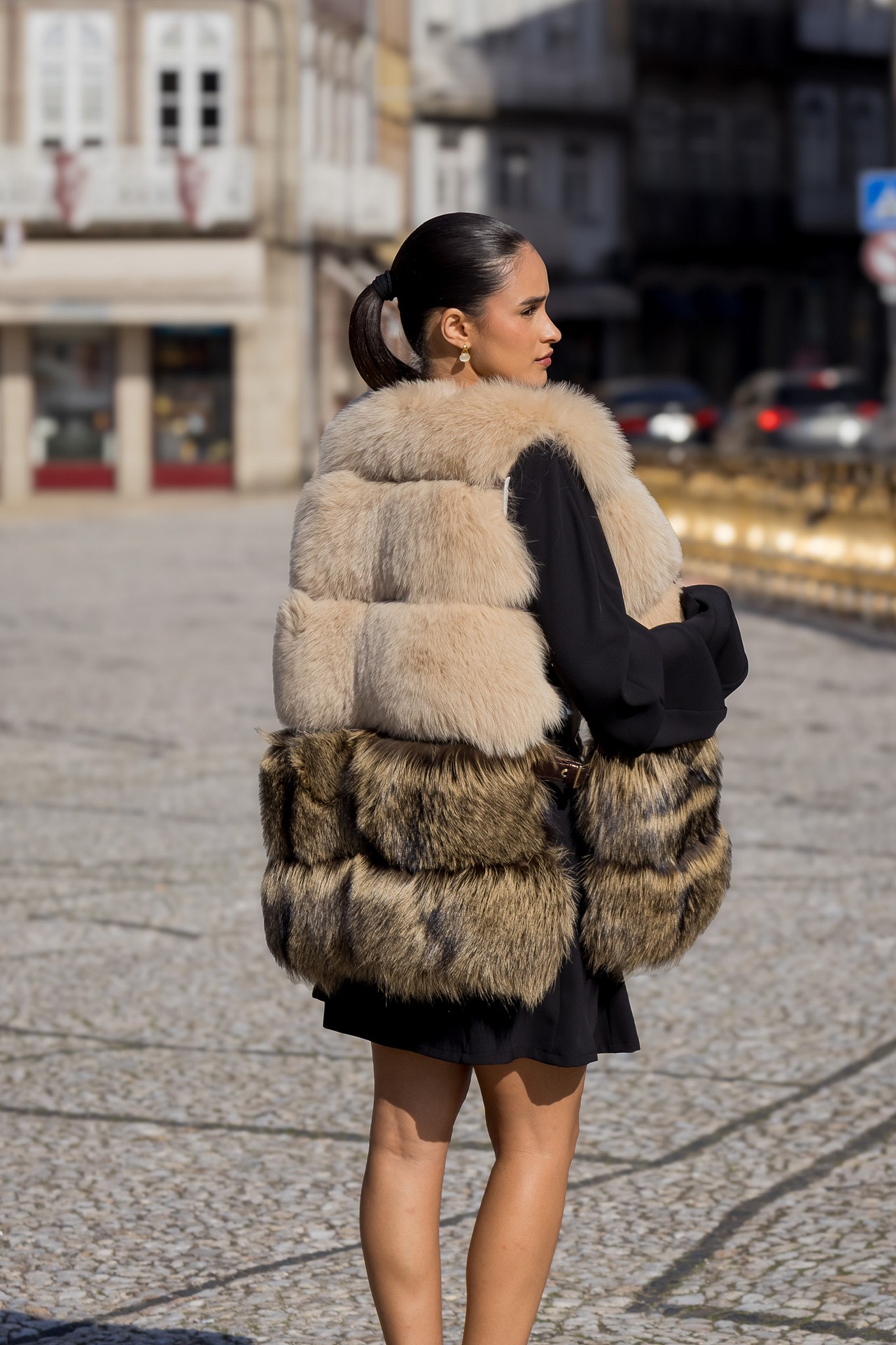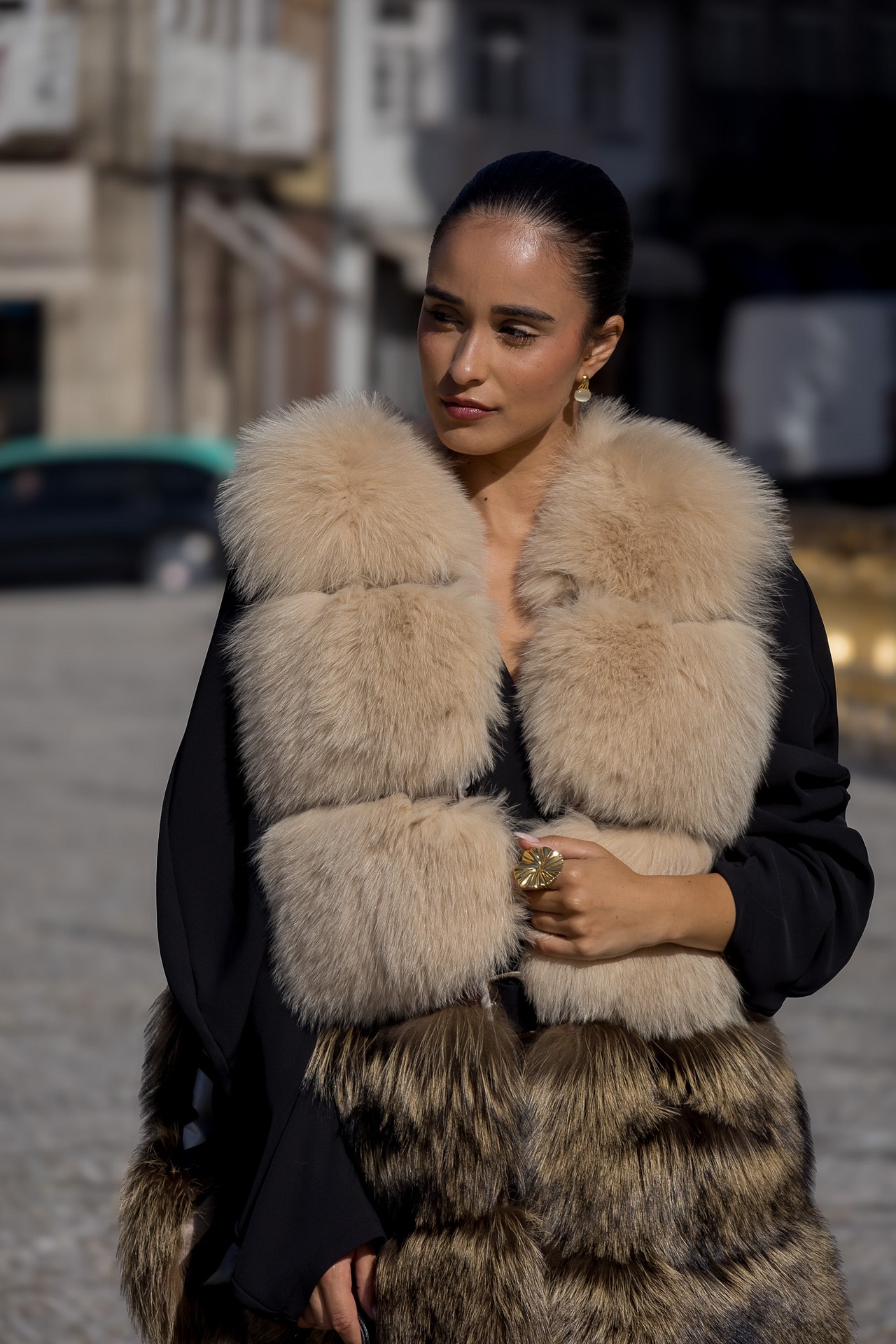 COLETE DE PELO BICOLOR BEGE E CASTANHO FLO&CLO