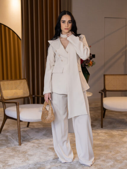 CONJUNTO BRANCO DE ALFAIATARIA COM LAÇO PONTO CHIC