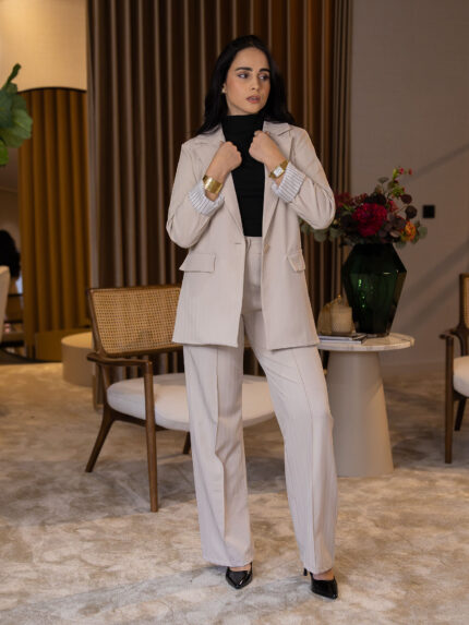 CONJUNTO BEGE BLAZER E CALÇA ALFAIATARIA PONTO CHIC