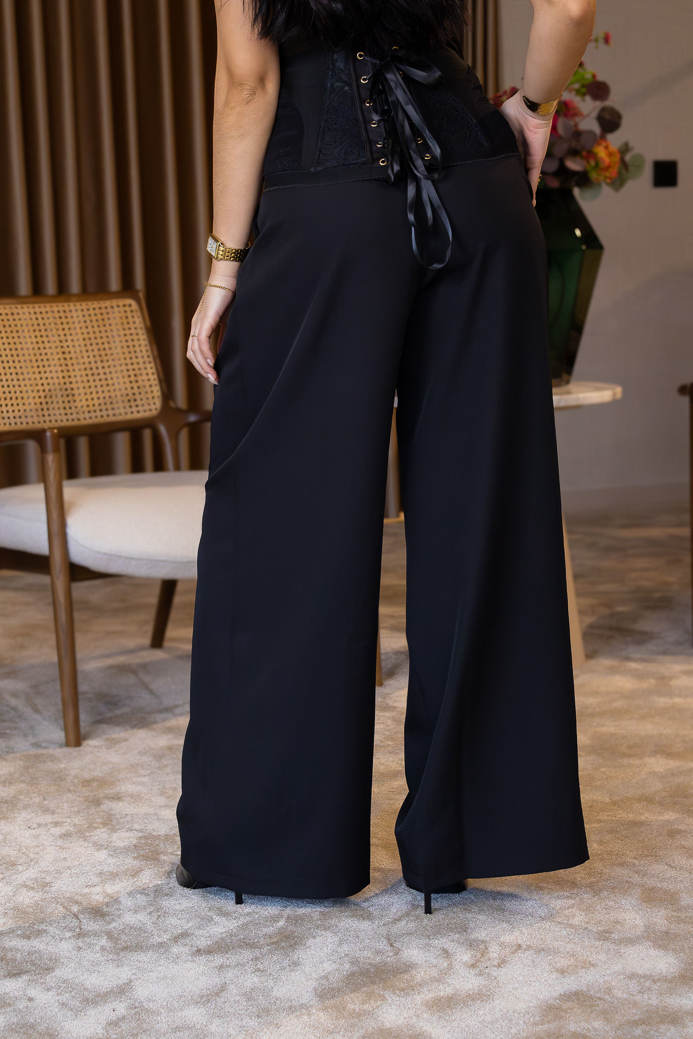 CONJUNTO PRETO DE ALFAIATARIA COM ABOTOAMENTO TRESPASSE PONTO CHIC