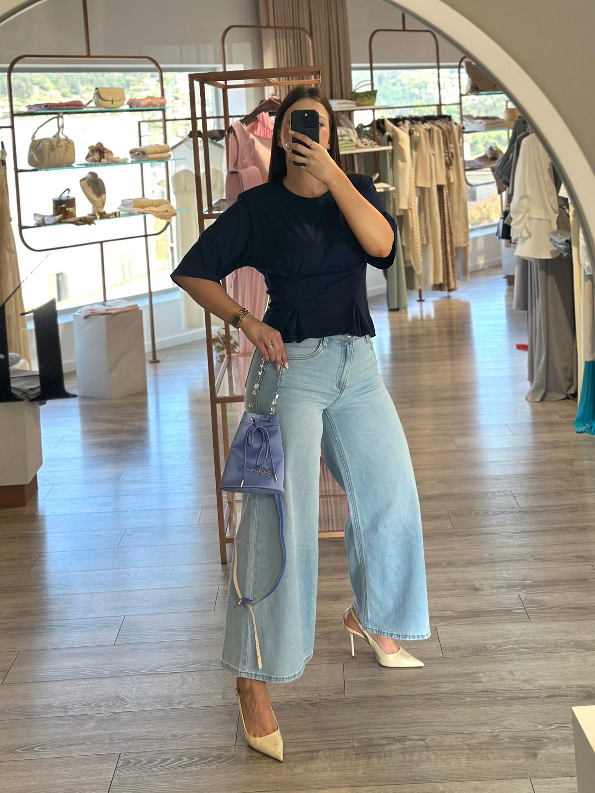 Ideal para conjugar com tops ajustados ou peças mais estruturadas, criando looks equilibrados, atuais e versáteis para diferentes ocasiões.