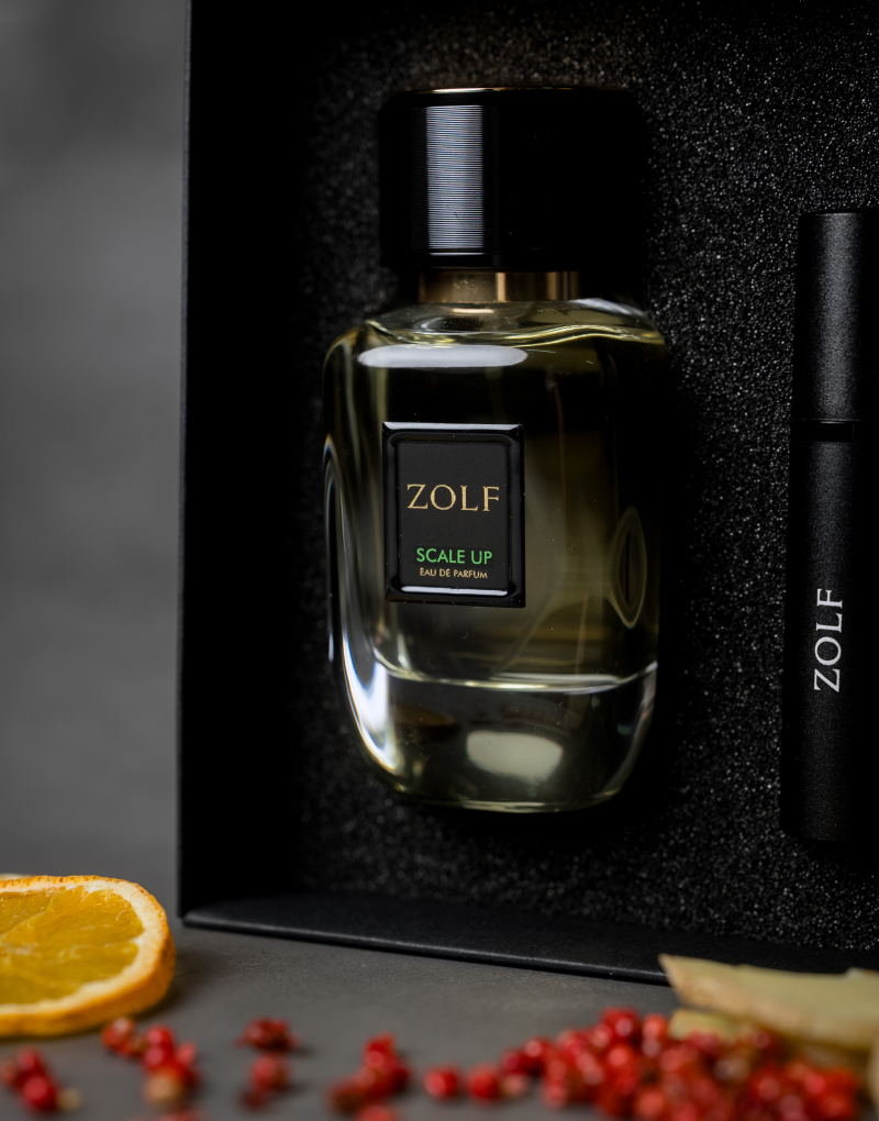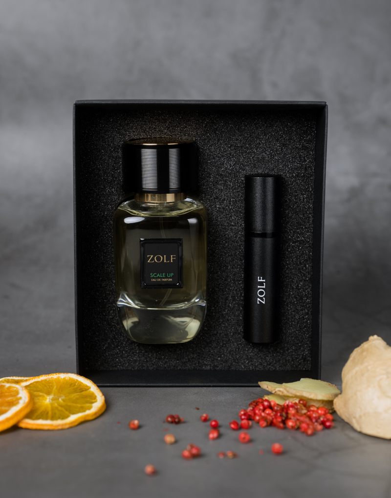 Um perfume envolvente com notas luminosas de néctar, bergamota e tangerina, suavizadas pela lavanda, e um coração de gengibre, pimenta rosa e cardamomo. A base de sândalo, patchouli, âmbar, tabaco, baunilha e musk deixa um rasto elegante e duradouro. Eau de Parfum SCALE UP 100ml + embalagem travel spray, com capacidade para 10ml.