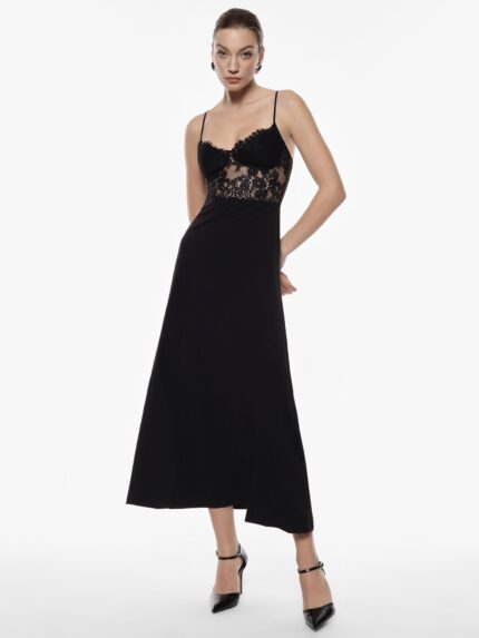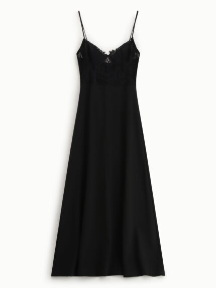 VESTIDO DE CETIM COM RENDA PRETO IMPERIAL