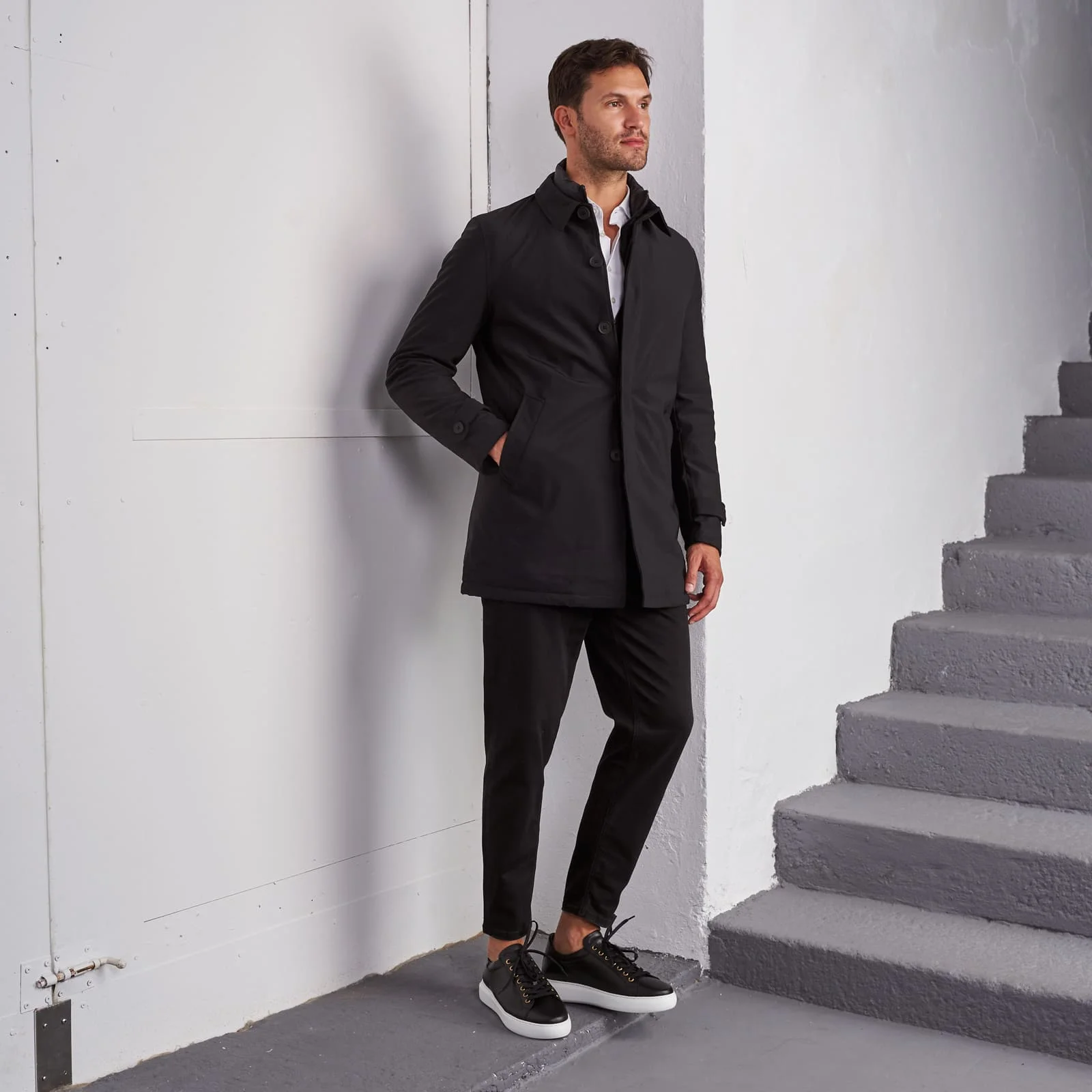 Perfeita para combinar com coordenados casuais ou mais formais, a gabardine técnica impermeável preta Zolf é uma aposta segura para quem valoriza estilo, durabilidade e um acabamento premium em qualquer situação.