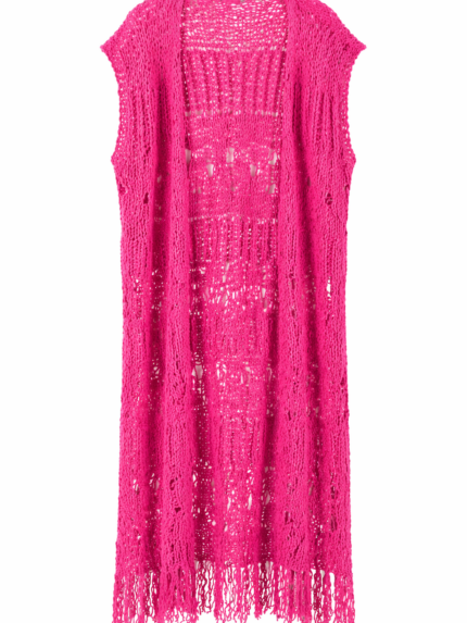 KIMONO EM MALHA ROSA COM FRANJAS PONTO CHIC