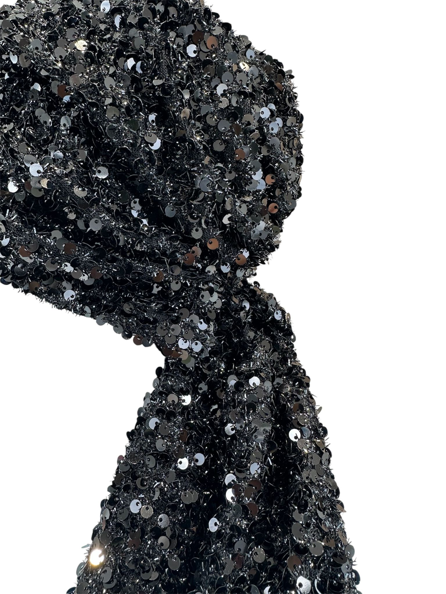 O lenço de cabeça de lantejoulas preto Rinascimento é o acessório perfeito para acrescentar um toque de glamour e elegância a qualquer look. Confeccionado em tecido macio e maleável, é totalmente coberto por lantejoulas pretas que captam e refletem a luz com subtileza, criando um brilho sofisticado e envolvente.
