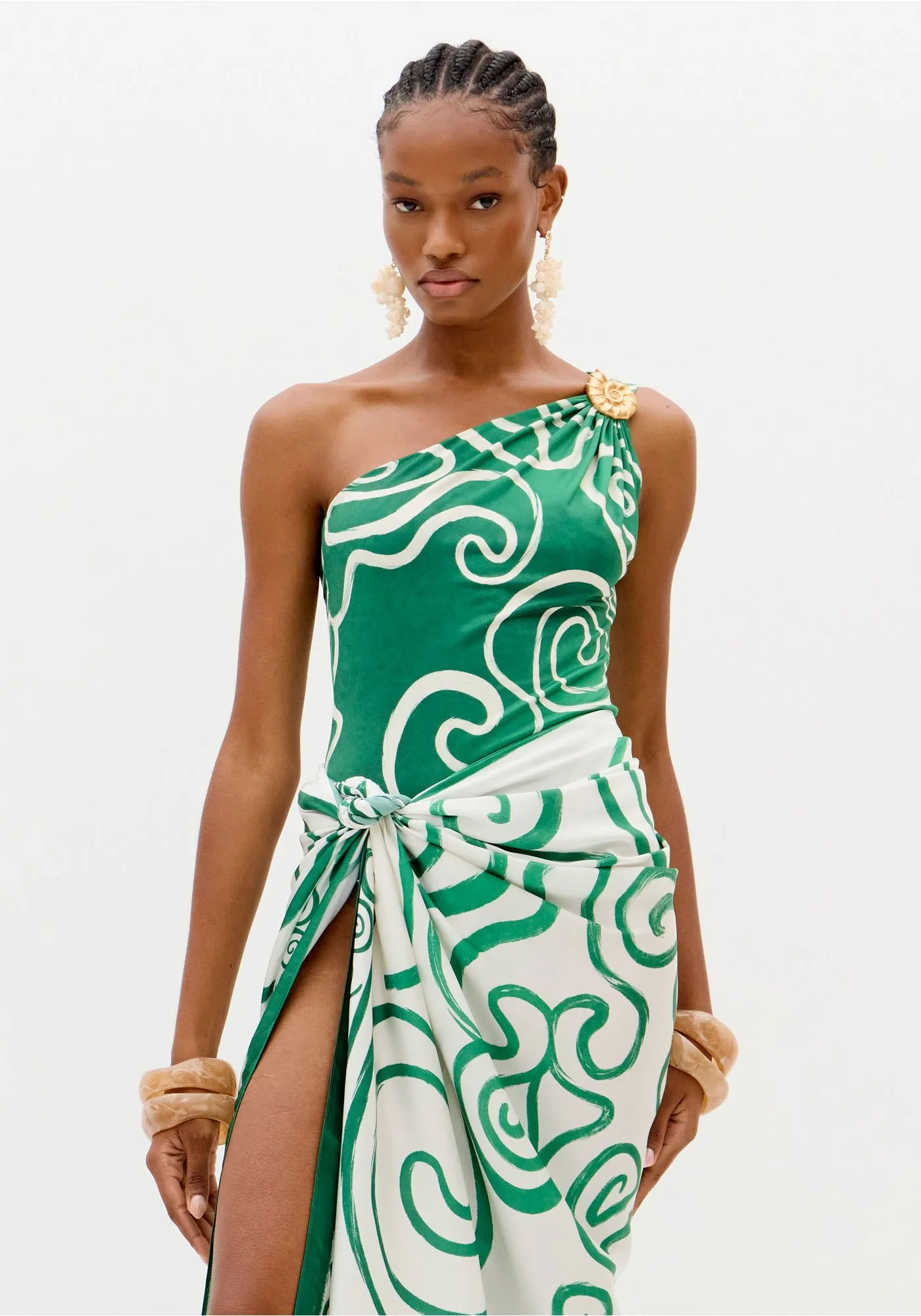 A estampa orgânica e moderna destaca-se pela sua identidade visual marcante, perfeita para dar vida a coordenados mais neutros ou para complementar looks mais ousados. Pode ser usado ao pescoço, como top, no cabelo ou até aplicado em malas, tornando-se um acessório multifuncional.