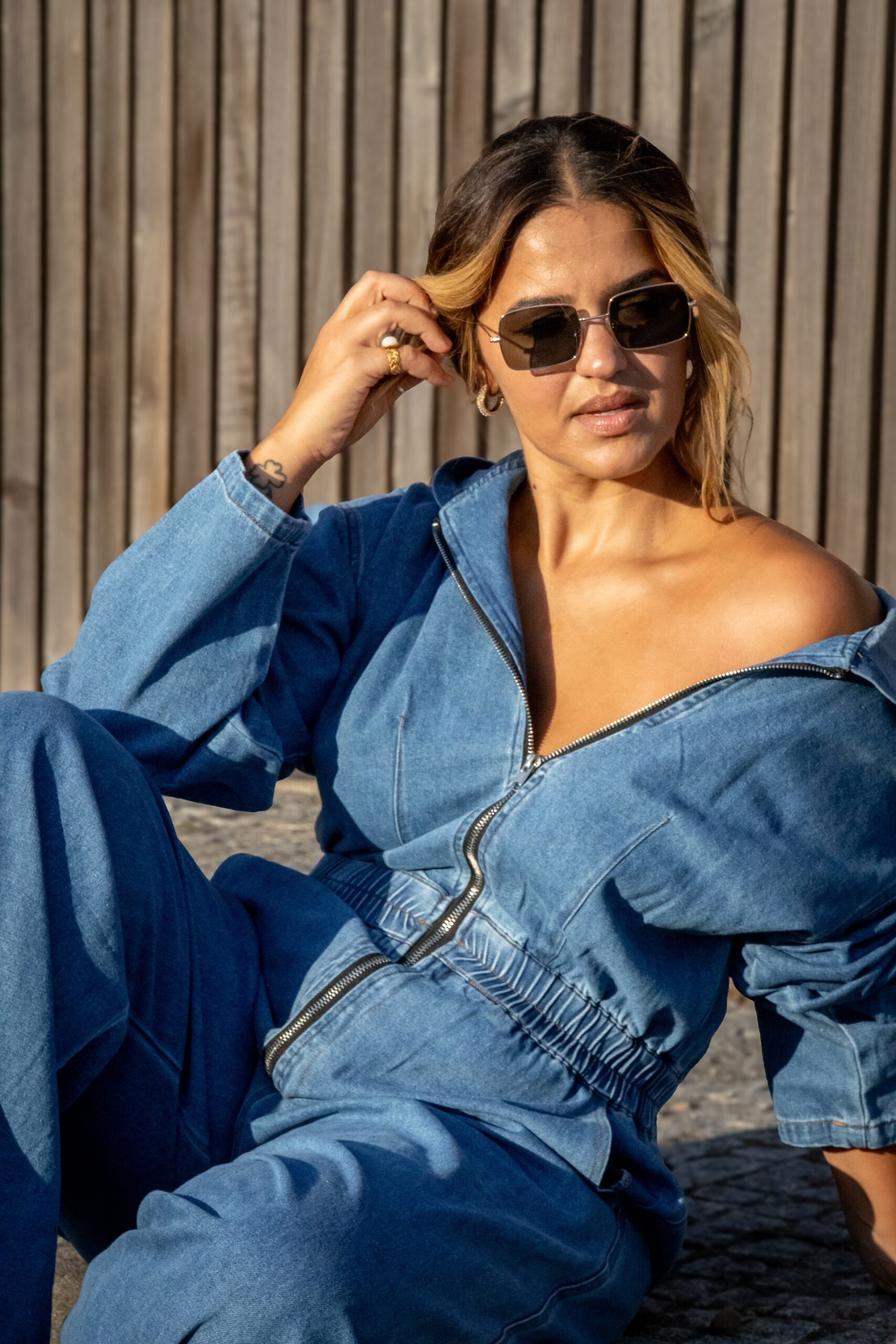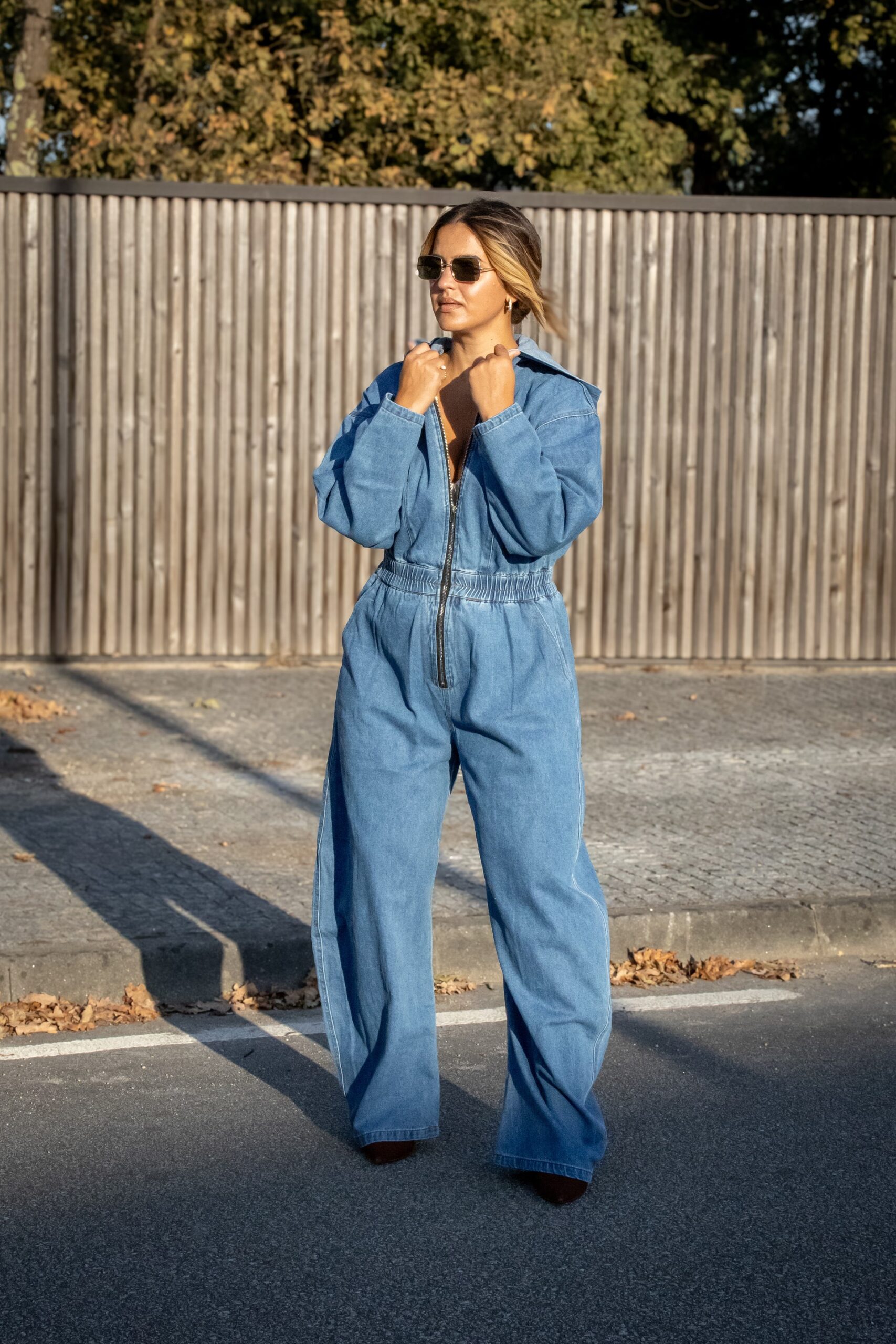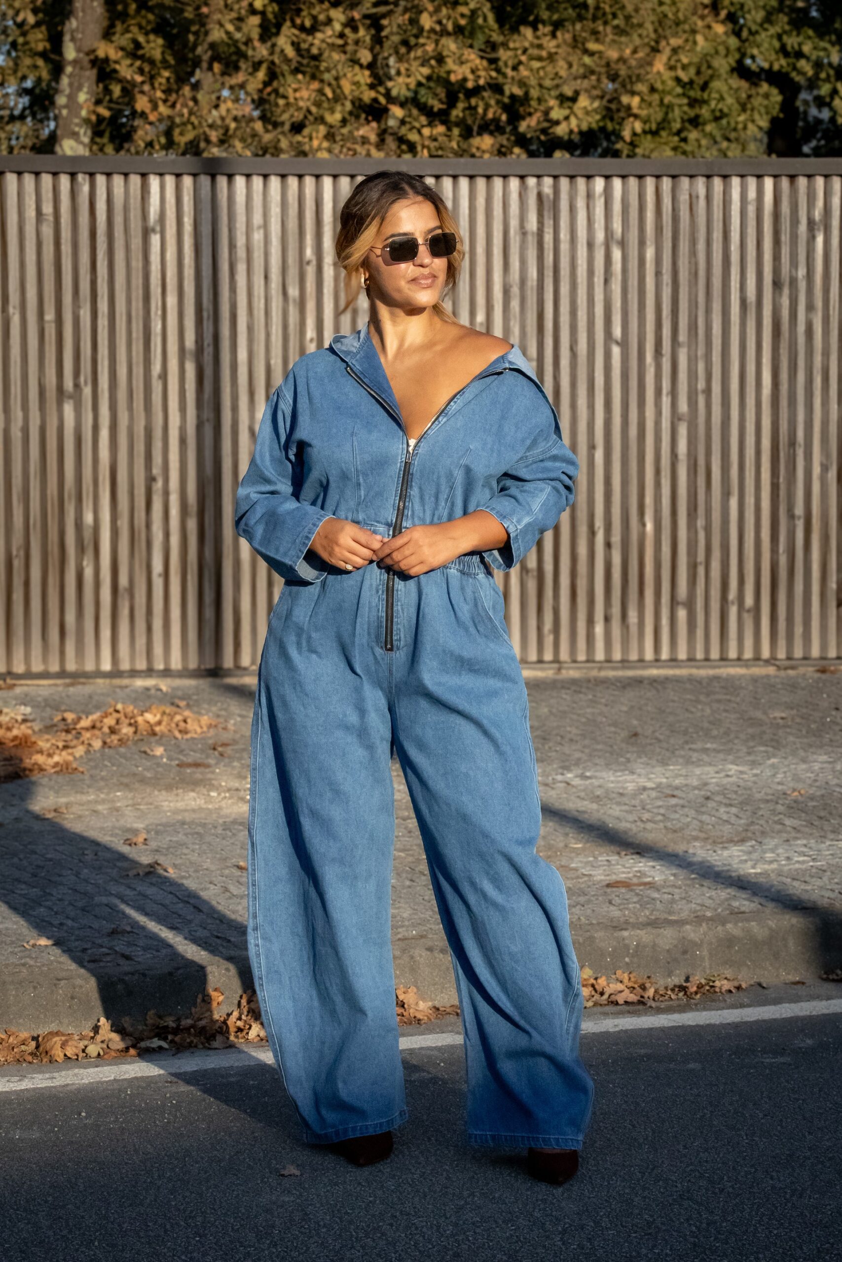 Macacão de ganga da marca Pontixque, confeccionado em 100% algodão para máximo conforto e respirabilidade. O modelo apresenta capuz integrado, fecho de correr frontal e detalhe de elástico na cintura que realça a silhueta sem perder a descontração. Versátil e moderno, este macacão pode ser usado tanto em looks casuais de dia a dia como em combinações mais arrojadas com acessórios para saídas urbanas.