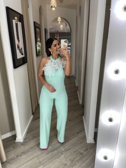 MACACÃO VERDE ÁGUA COM APLICAÇÃO DE RENDA RINASCIMENTO