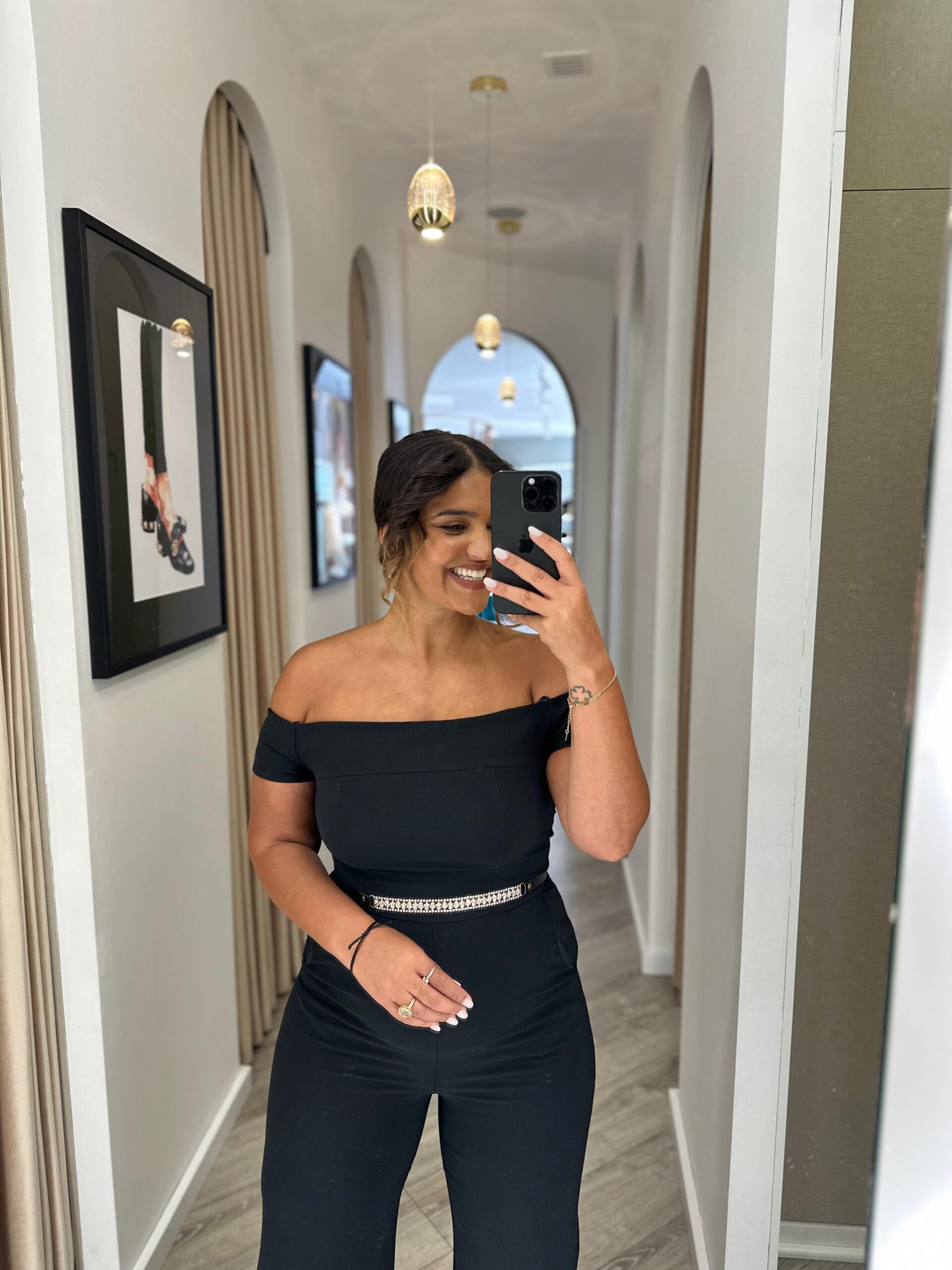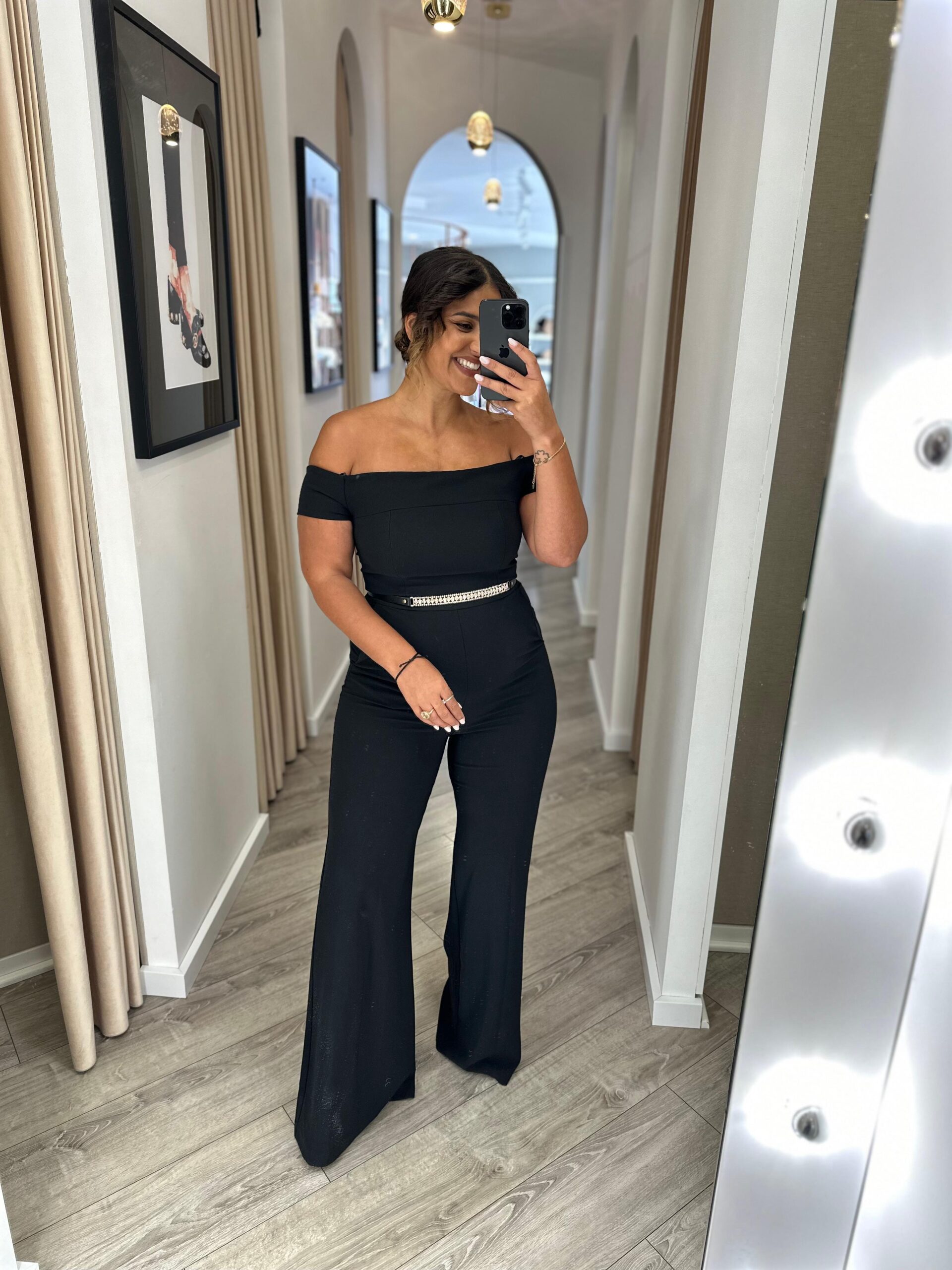 O detalhe especial deste macacão é o cinto removível com aplicação de brilhantes, que acrescenta um toque glamoroso e transforma a peça numa verdadeira afirmação de estilo. O corte elegante com decote reto e alças delicadas cria um equilíbrio perfeito entre modernidade e sofisticação.
