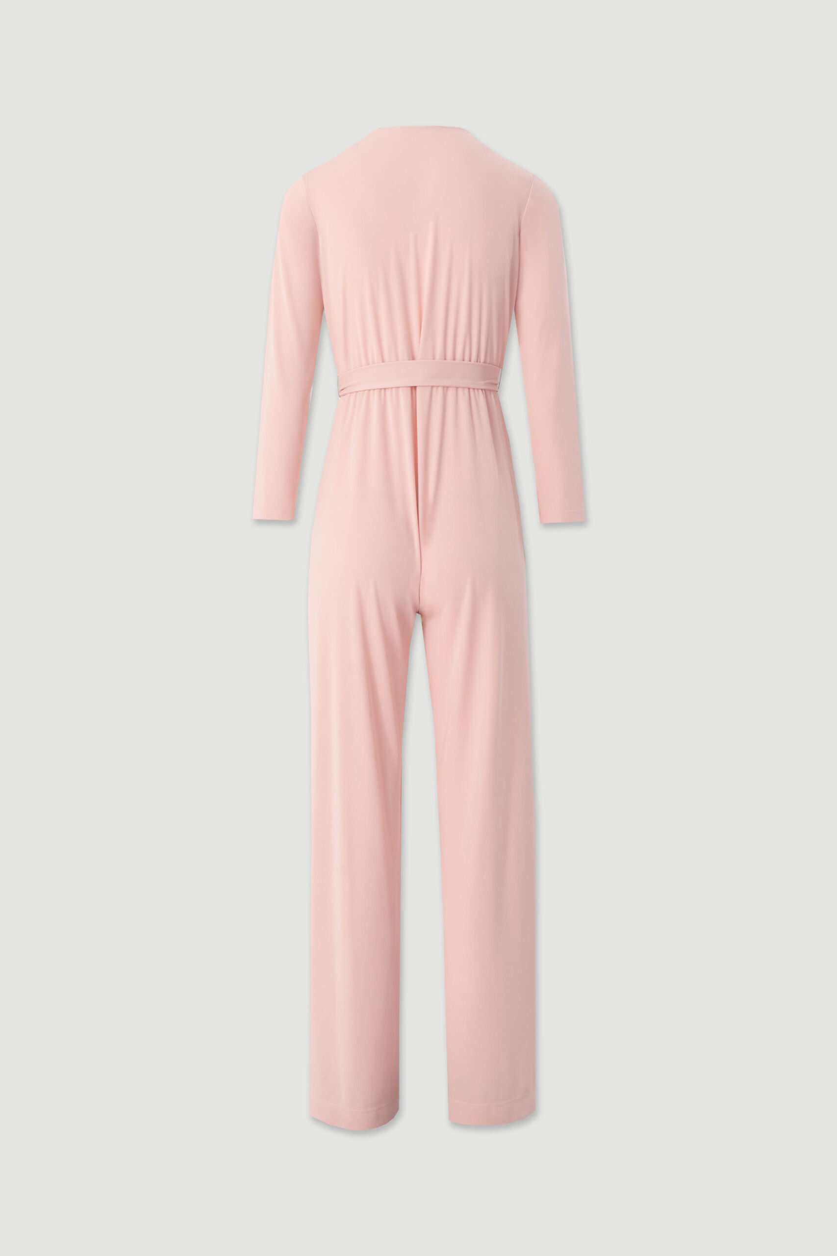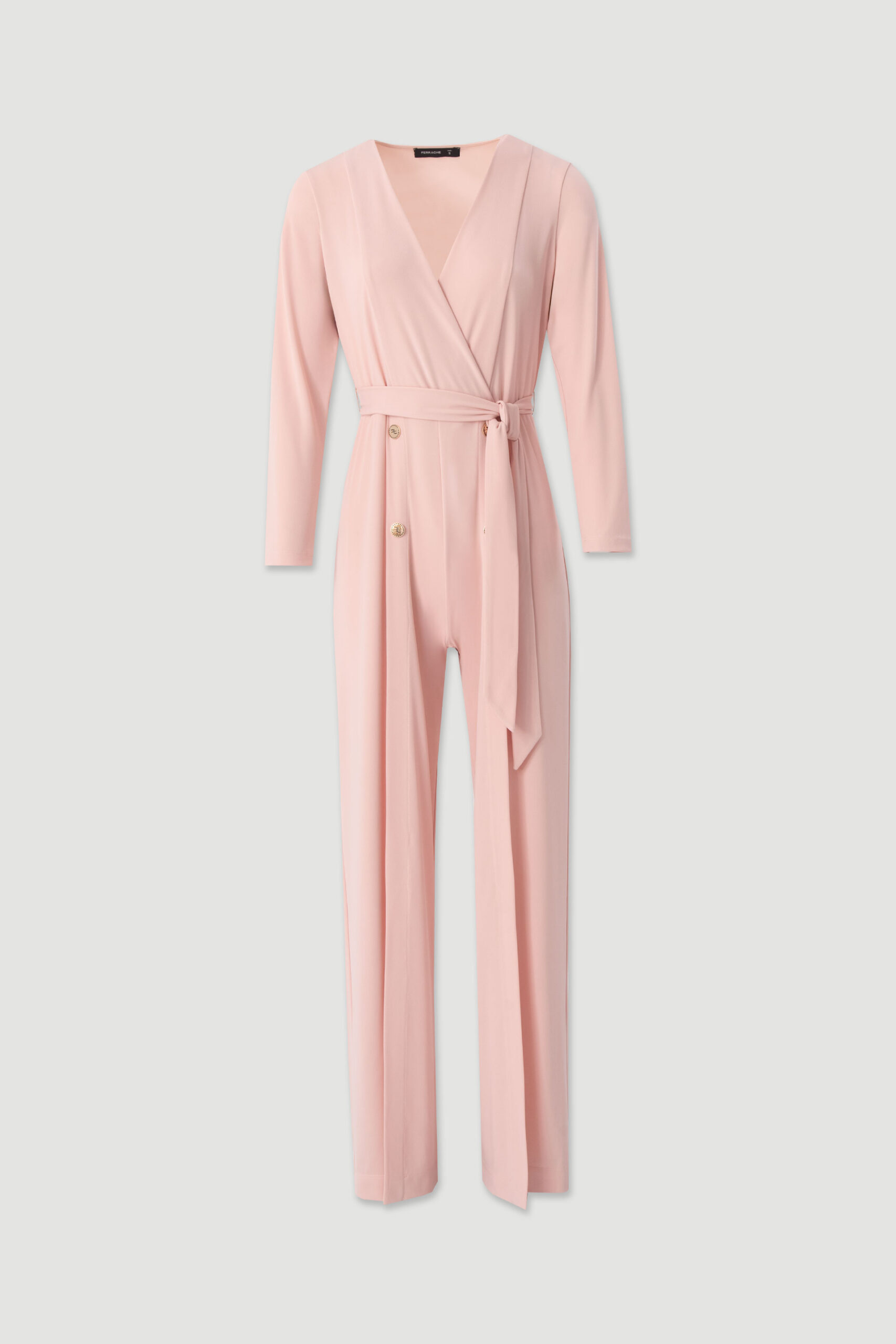 MACACÃO ROSA FLUIDO COM DECOTE CRUZADO E CINTO FERRACHE