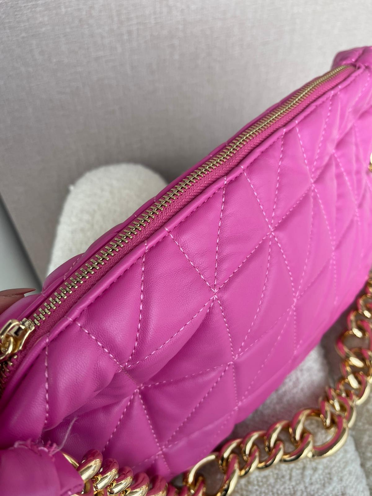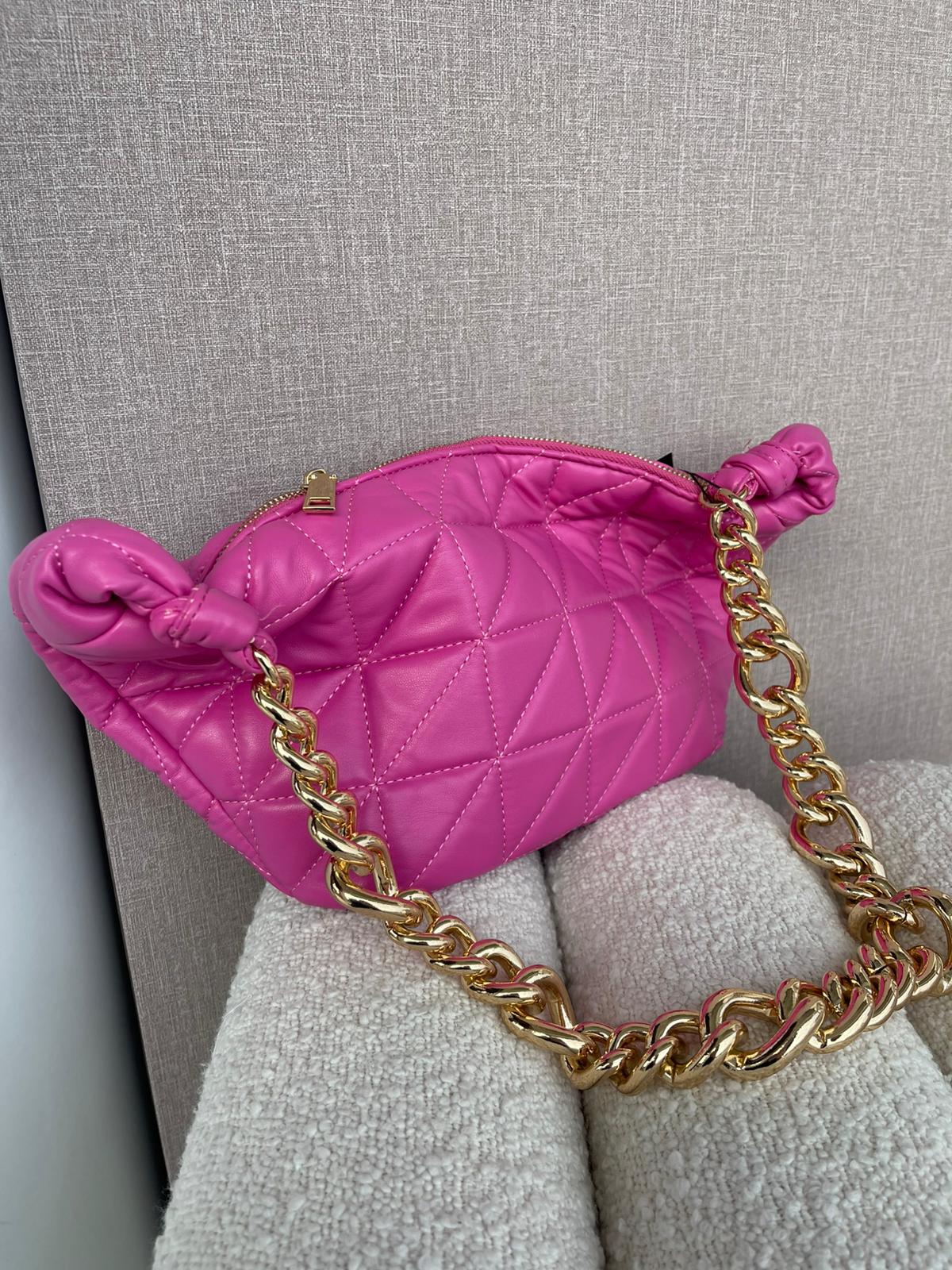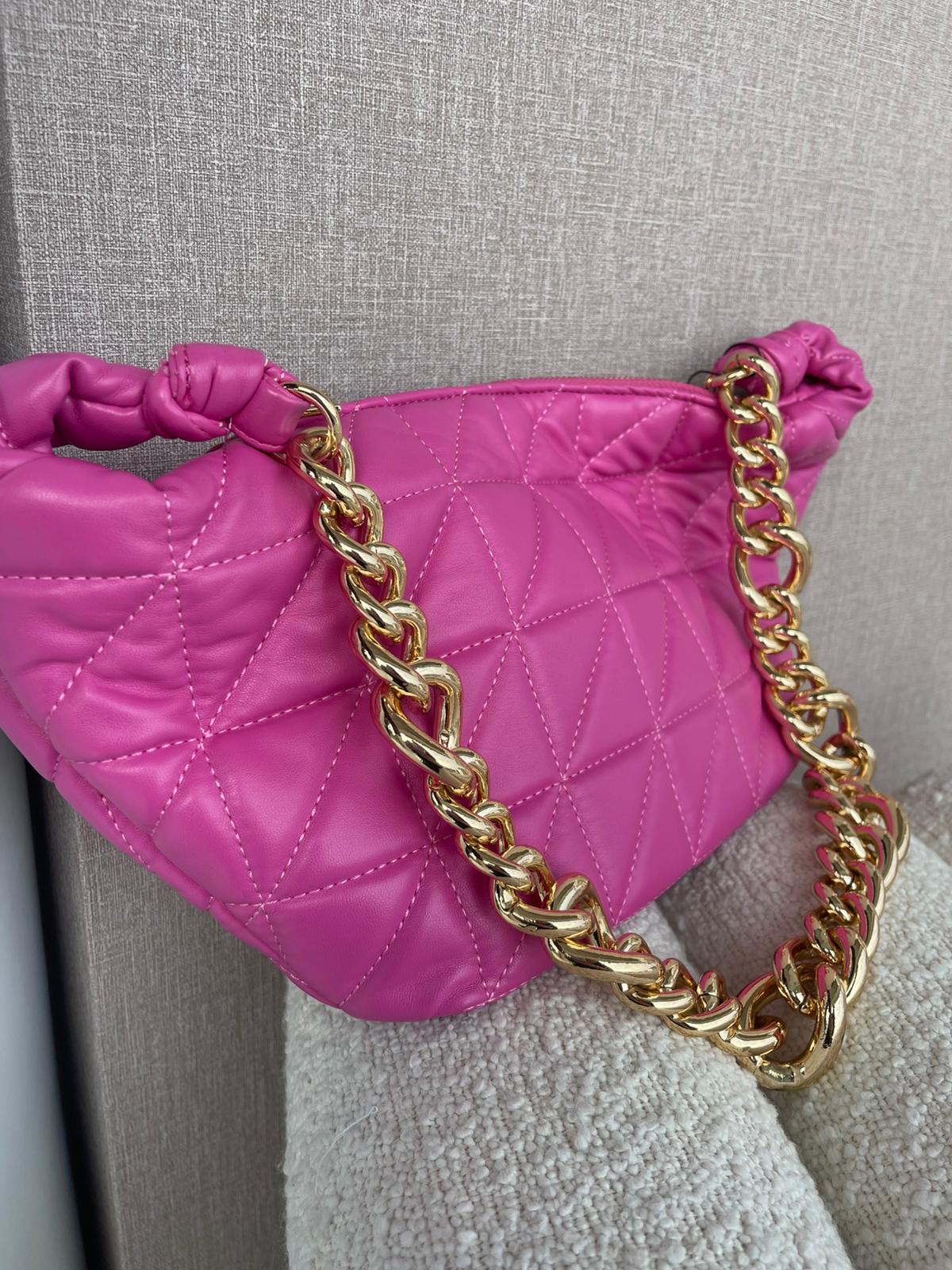 MALA ACOLCHOADA ROSA COM CORRENTE PONTO CHIC