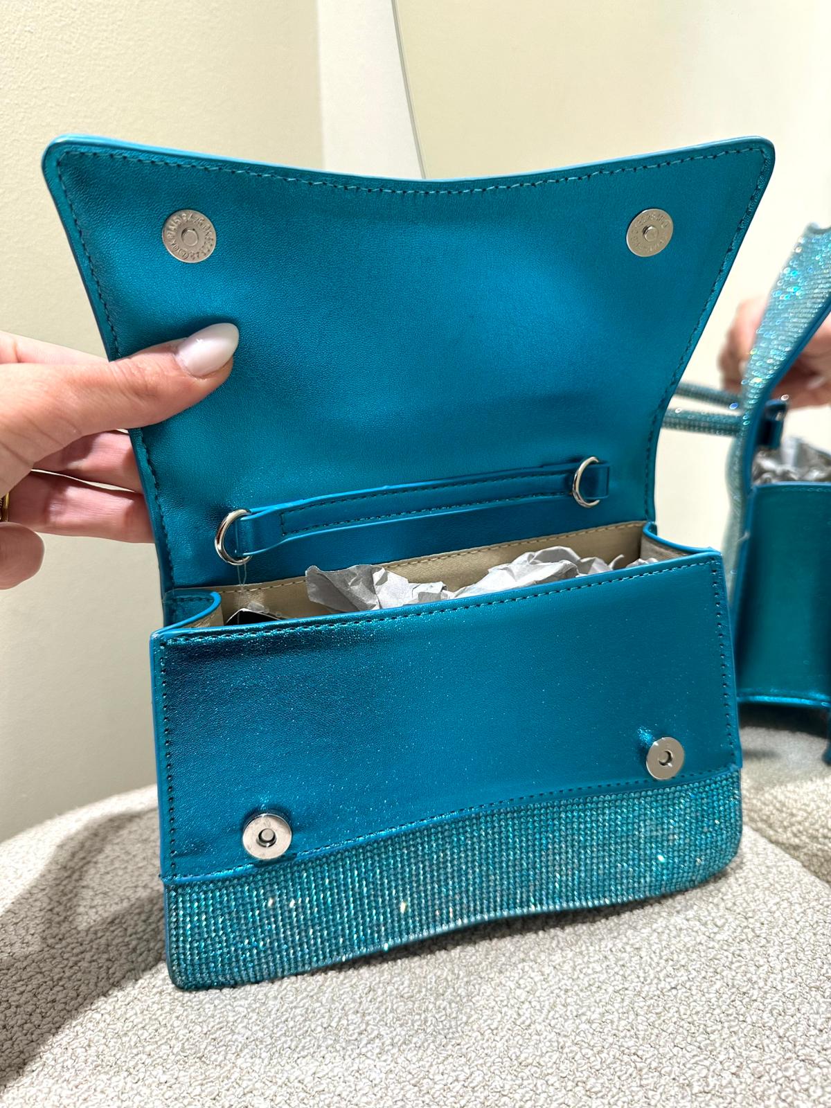 A mala Ponto Chic em azul-turquesa é o acessório que transforma qualquer coordenado num look de festa inesquecível.