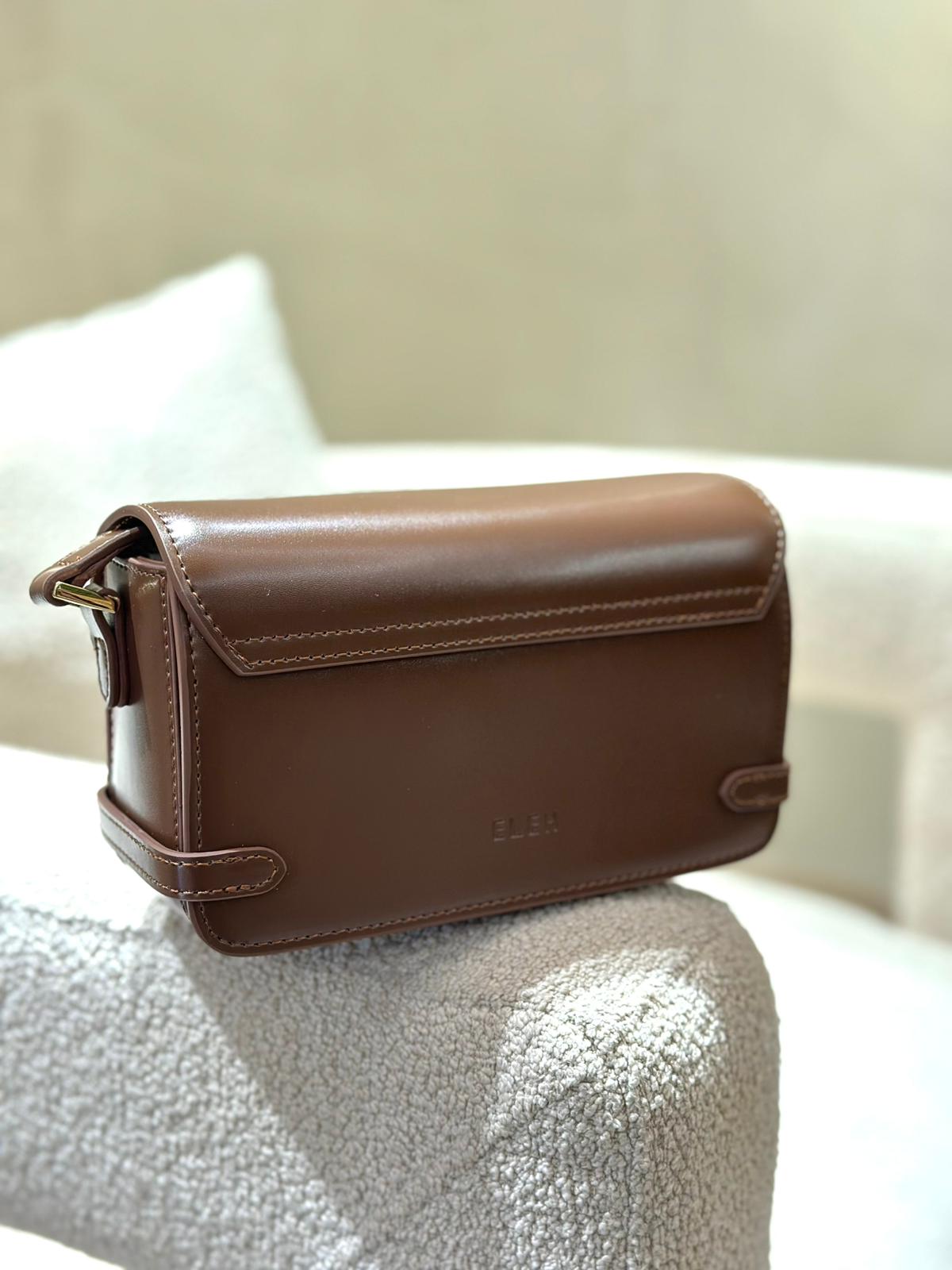 A mala castanha da marca Eleh combina sofisticação e intemporalidade num design estruturado que se adapta a qualquer ocasião. Confeccionada em 100% pele genuína, destaca-se pela qualidade premium e pelo acabamento luxuoso, com frente em camurça e aba lisa em pele polida.