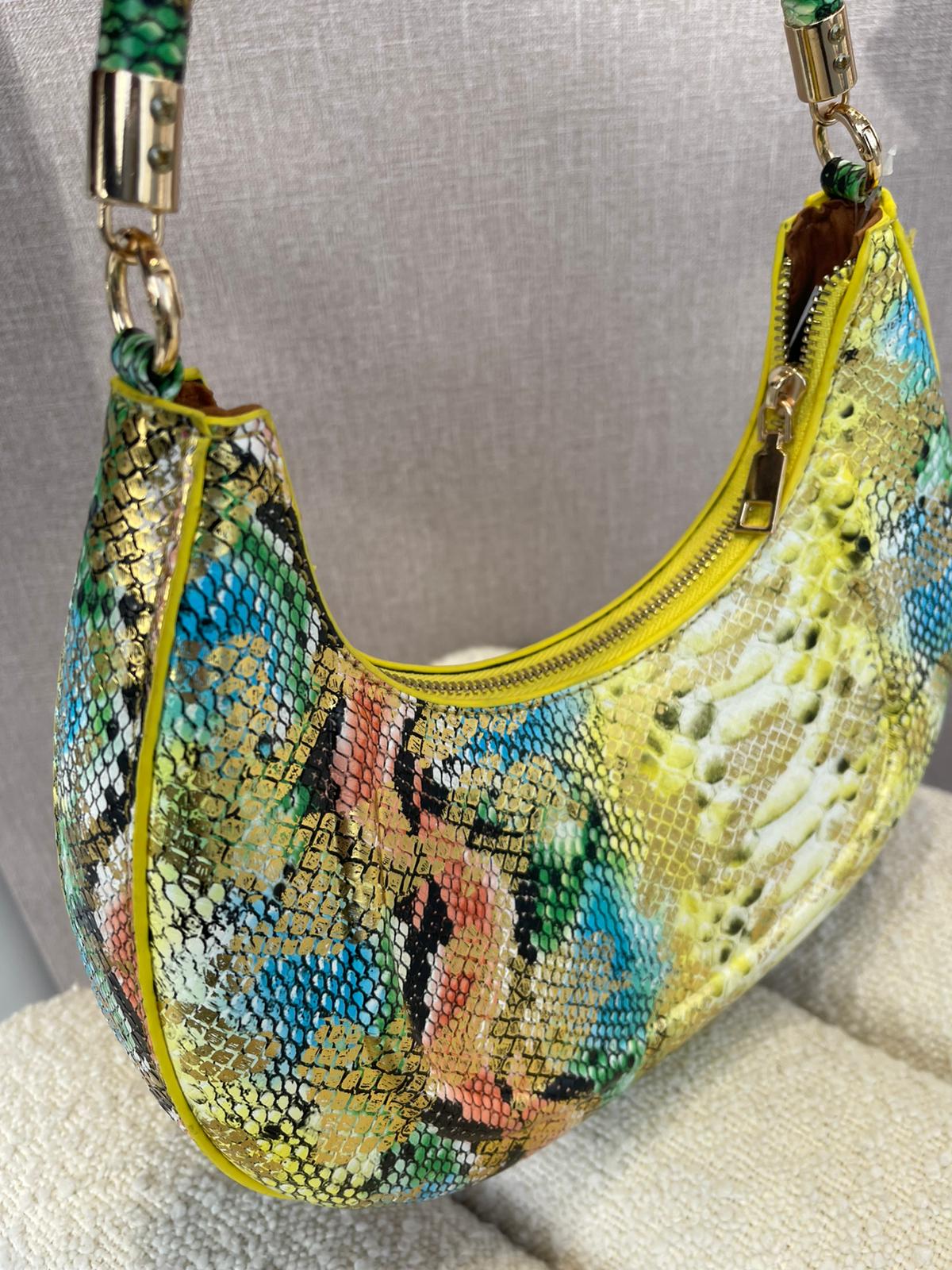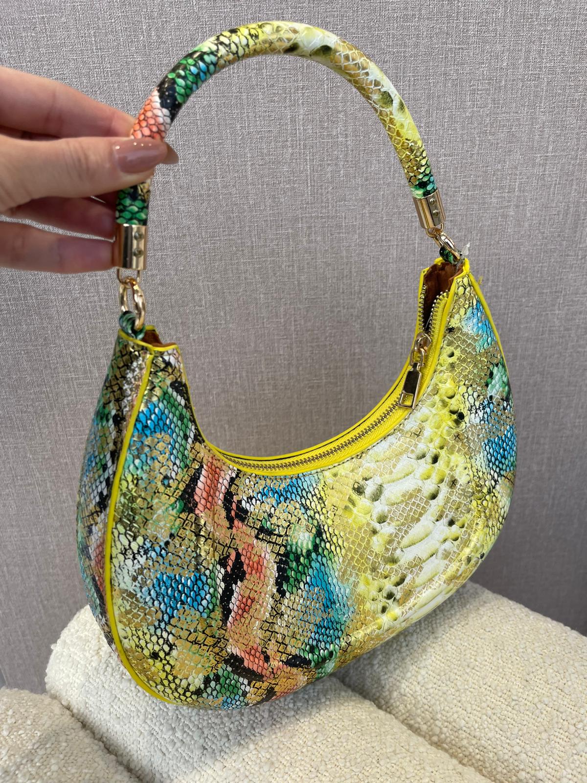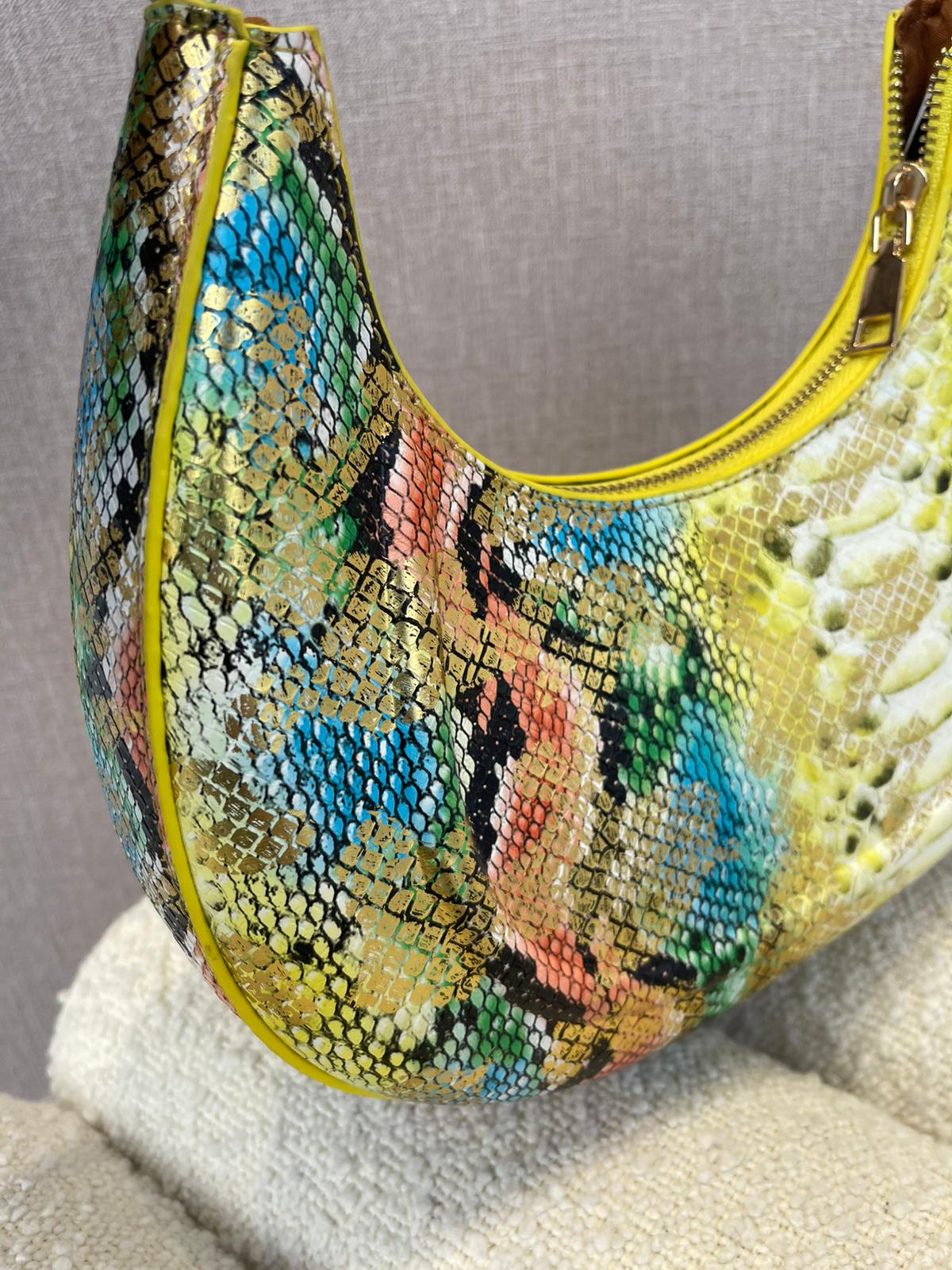 A Mala Cobra Multicolor da Ponto Chic é uma peça statement, pensada para mulheres que adoram acessórios marcantes e cheios de personalidade. Com um design compacto e elegante, destaca-se pelo estampado de pele de cobra em tons vibrantes — amarelo, verde, azul, coral e dourado — criando um visual moderno e luxuoso.