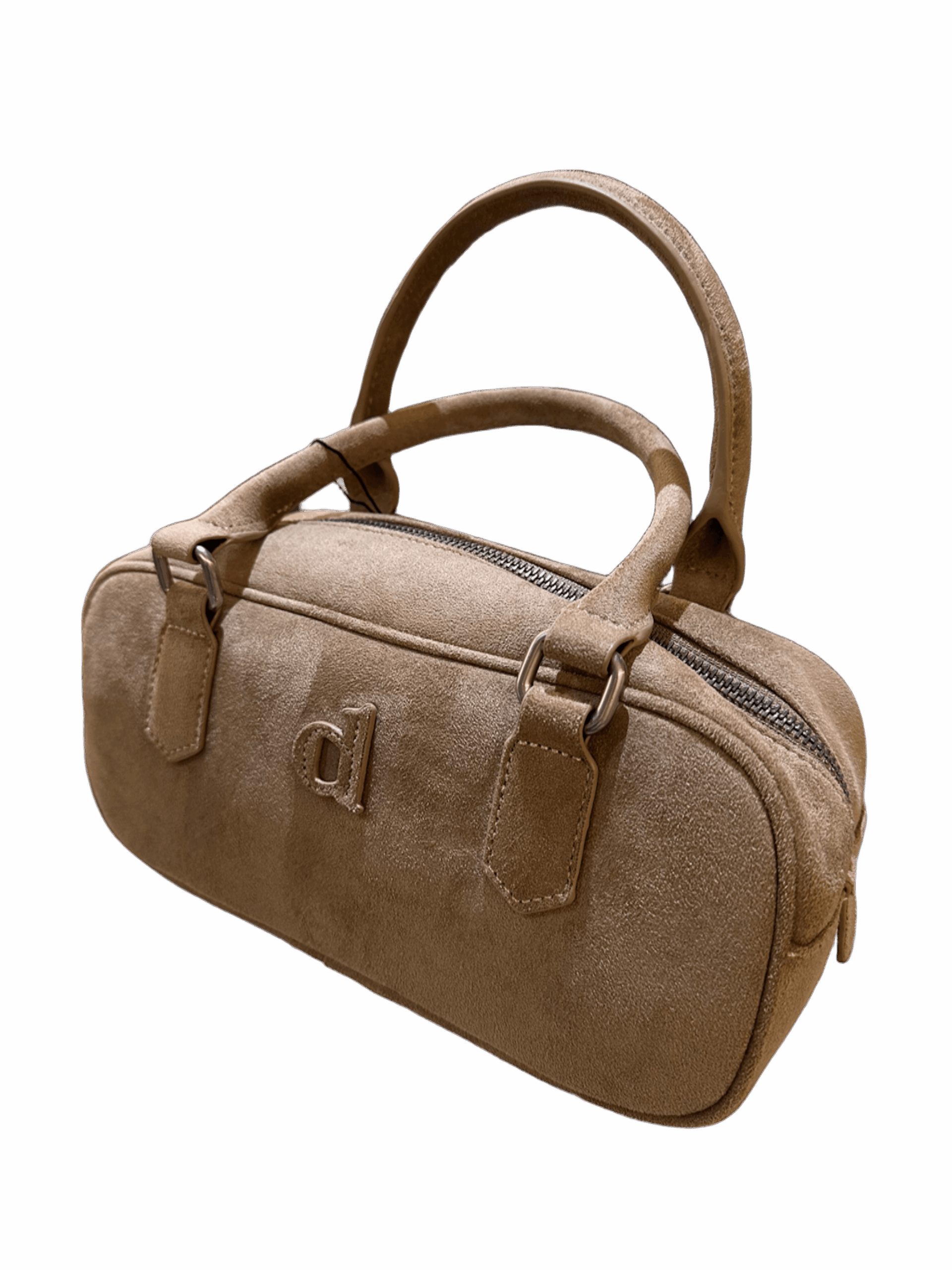 Mala em 100% couro com acabamento efeito camurça, numa elegante tonalidade castanha que transmite sofisticação e versatilidade. Um clássico intemporal que se adapta facilmente a coordenados neutros, looks urbanos ou produções mais estruturadas.