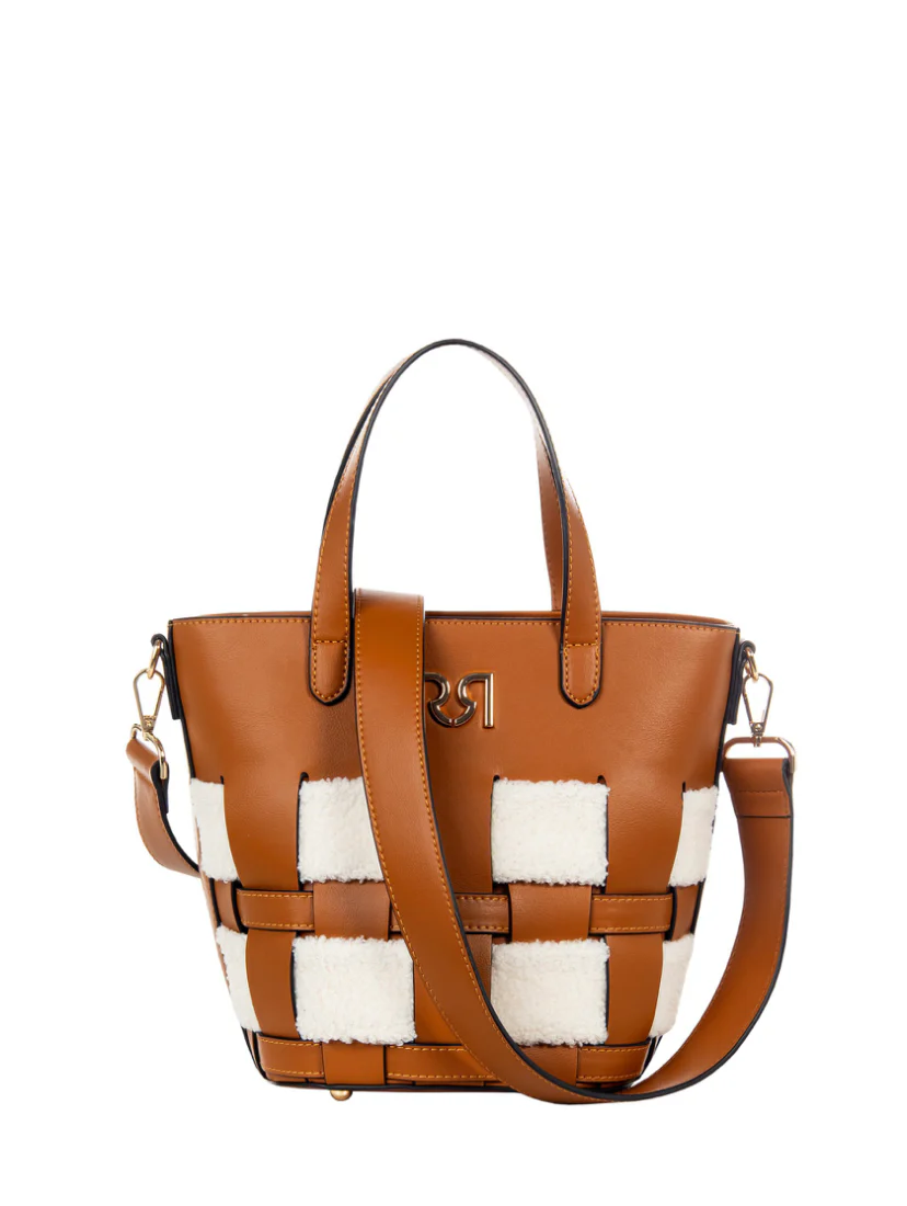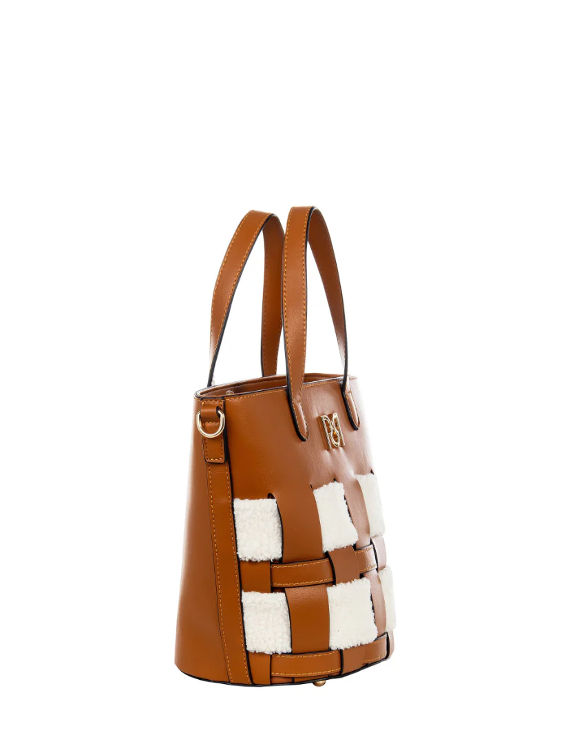 MALA ENTRANÇADA CAMEL COM DETALHE EM PÊLO RINASCIMENTO