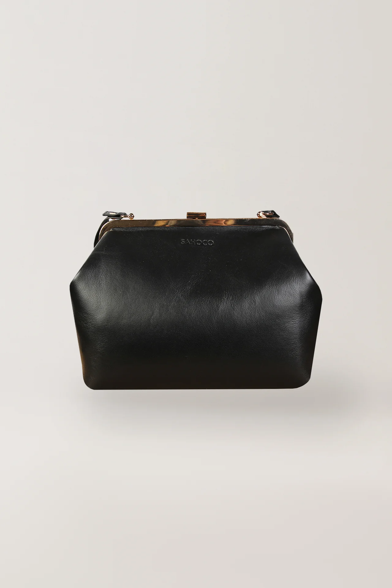 MALA PRETA EM PELE COM ESTRUTURA METÁLICA SAHOCO