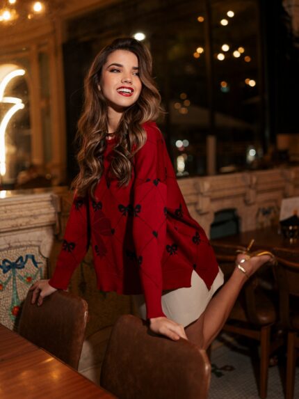 MALHA TRICOT VERMELHA COM LAÇOS RUGA