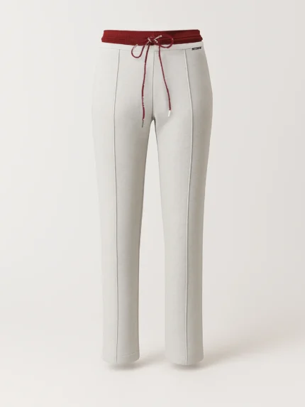 Calças de linho. Cintura elástica contrastante. Ajuste regular nas pernas.