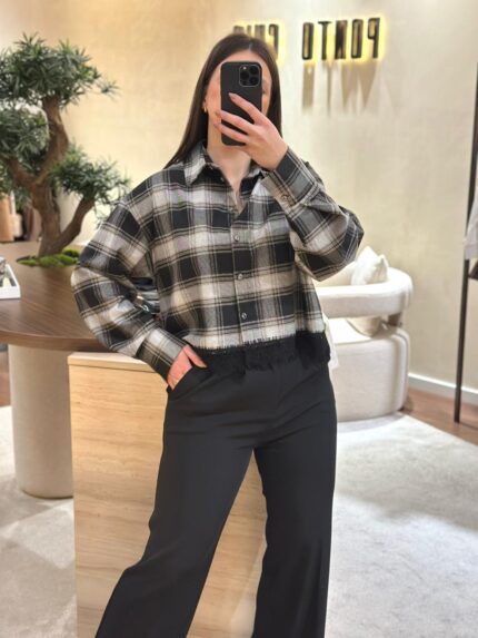 CALÇA PRETA FLUIDA COM PREGAS PONTO CHIC