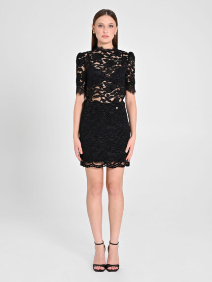SAIA CURTA RENDADO PRETO RINASCIMENTO