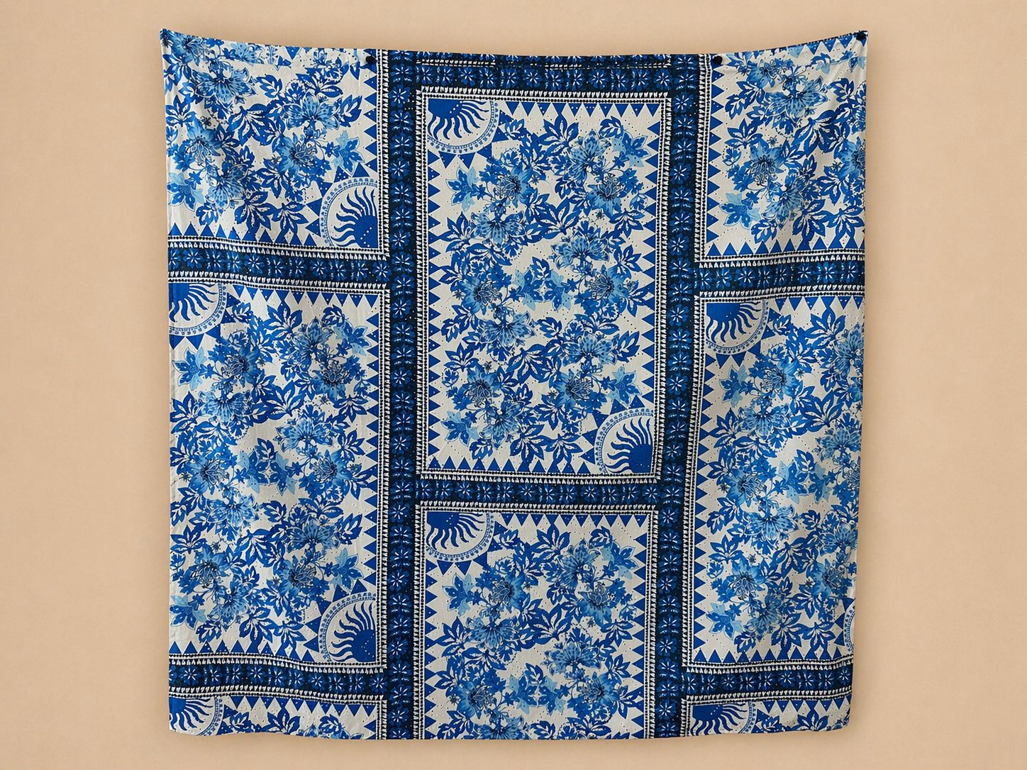 PAREO AZUL E BRANCO FLORAL COM