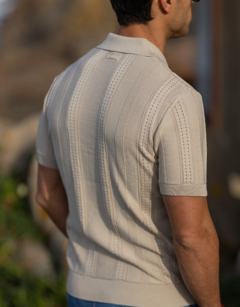 POLO BEGE TRICOT TRANÇA COM BOTÕES PONTO CHIC