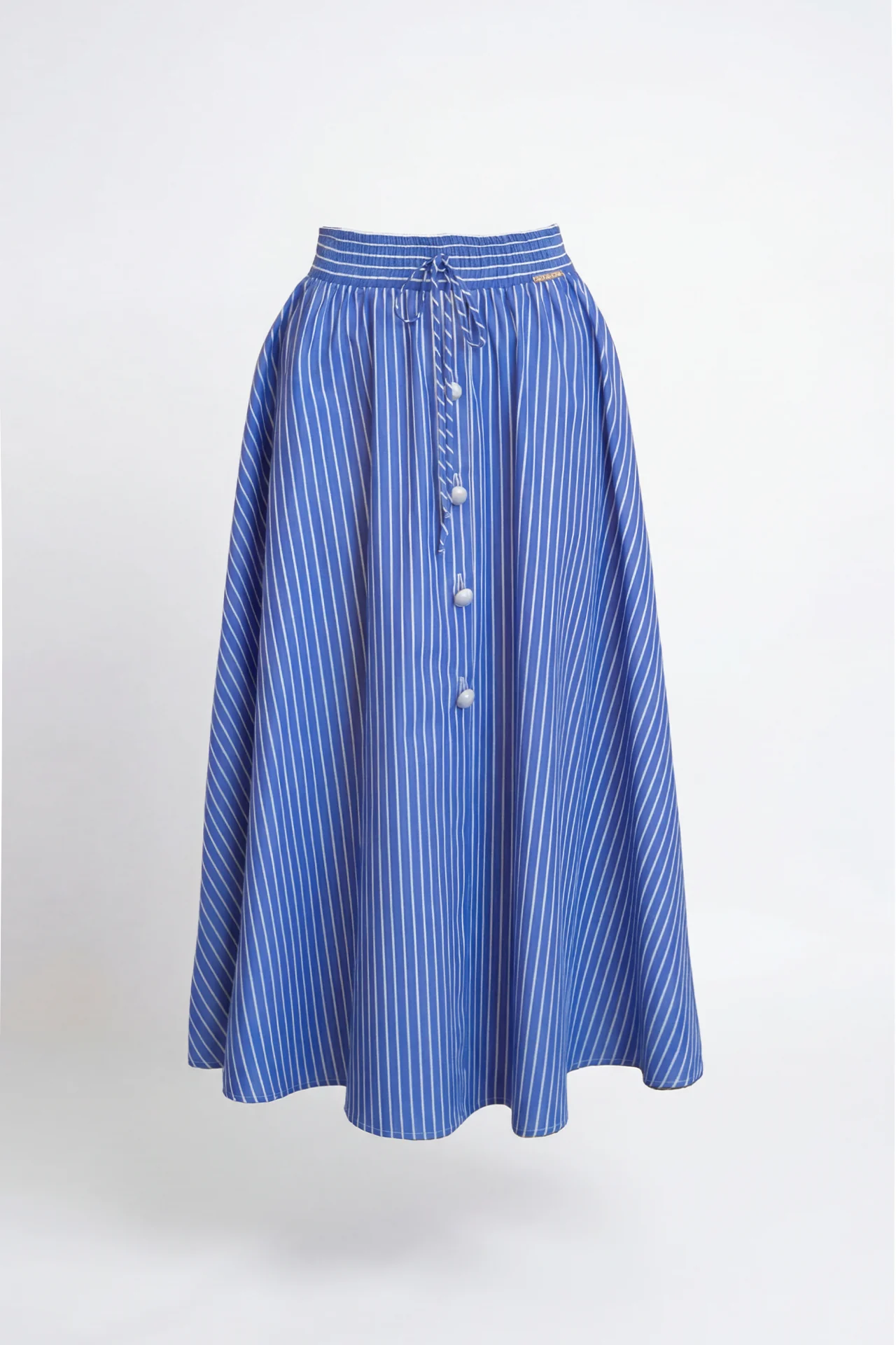 SAIA AZUL ÀS RISCAS COM CINTURA ELÁSTICA SAHOCO