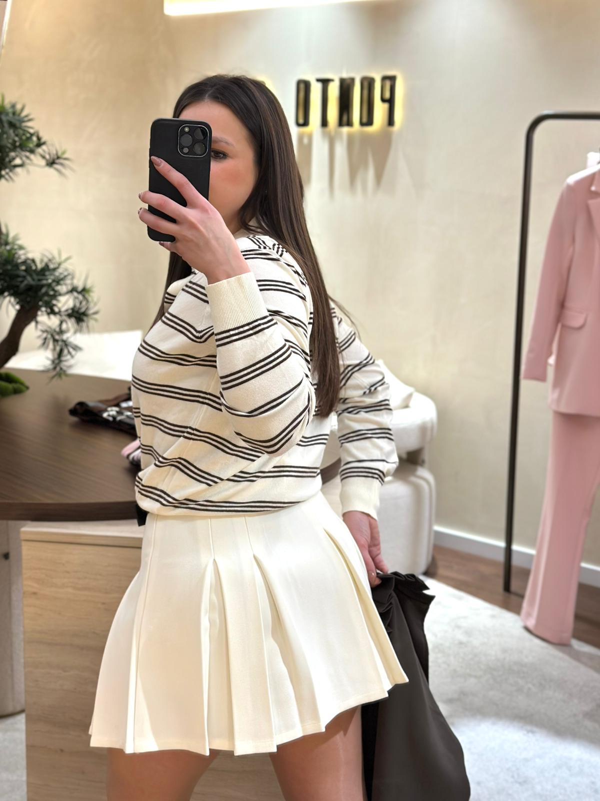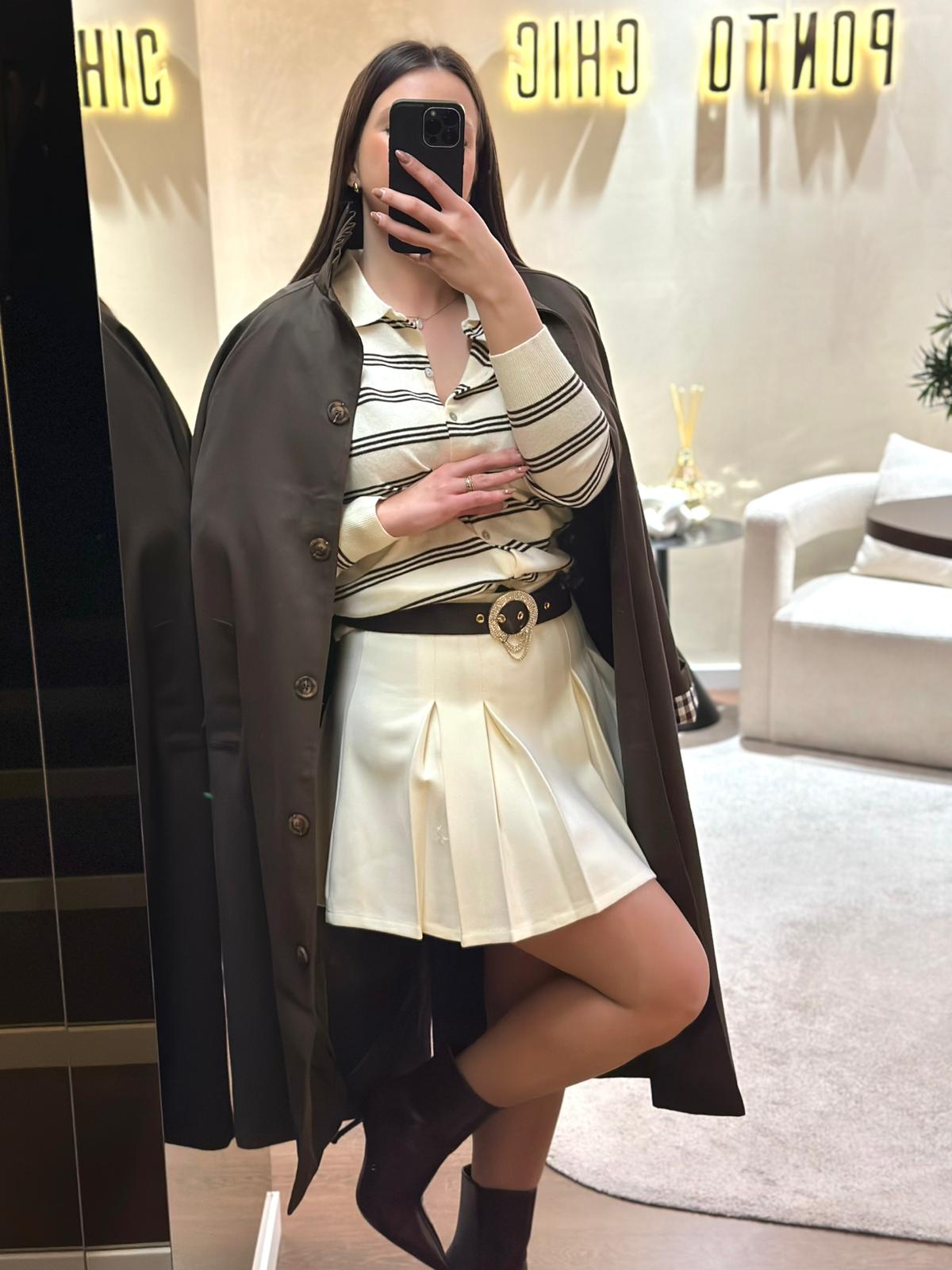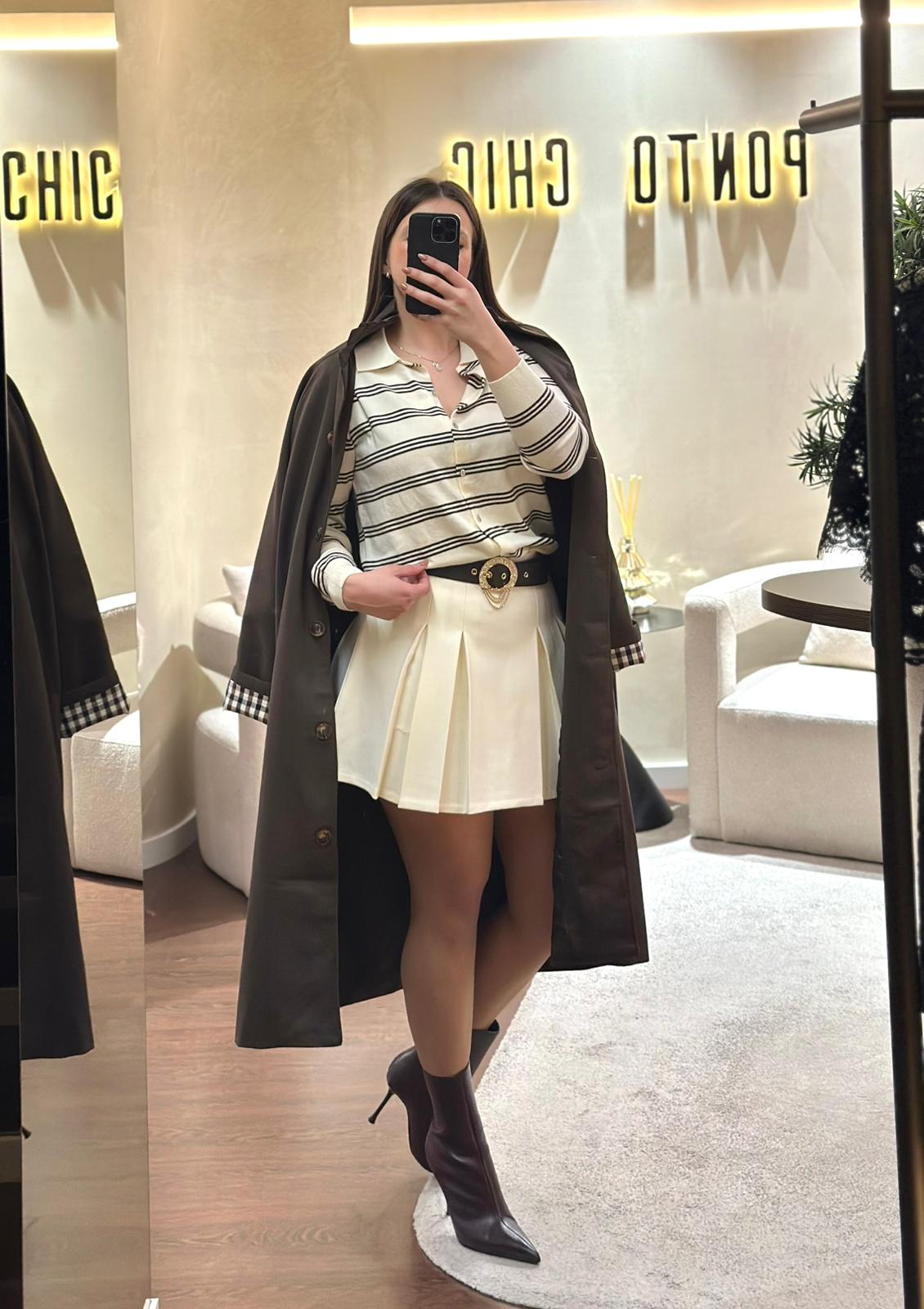 Versátil e intemporal, esta saia é ideal para combinar com camisas, malhas ou tops mais ajustados, adaptando-se facilmente a looks de dia ou propostas mais elegantes. Uma peça essencial no guarda-roupa feminino, com a atenção ao detalhe e a elegância que definem a identidade Ponto Chic.