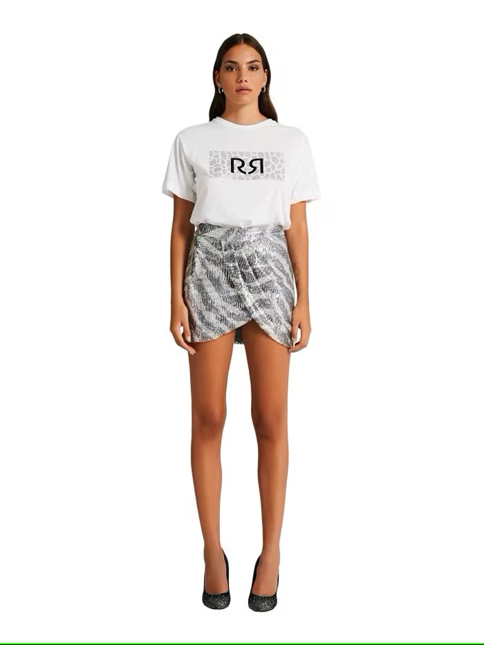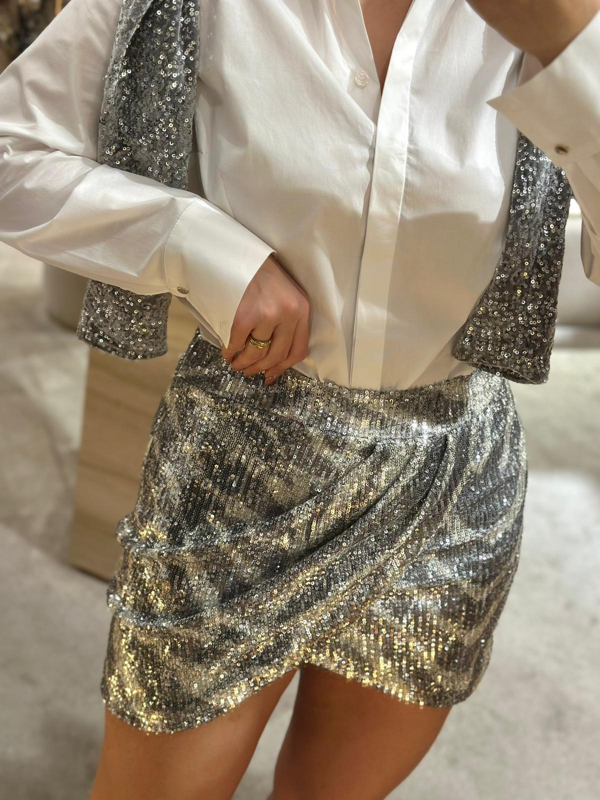SAIA CURTA PRATEADA DE LANTEJOULAS RINASCIMENTO