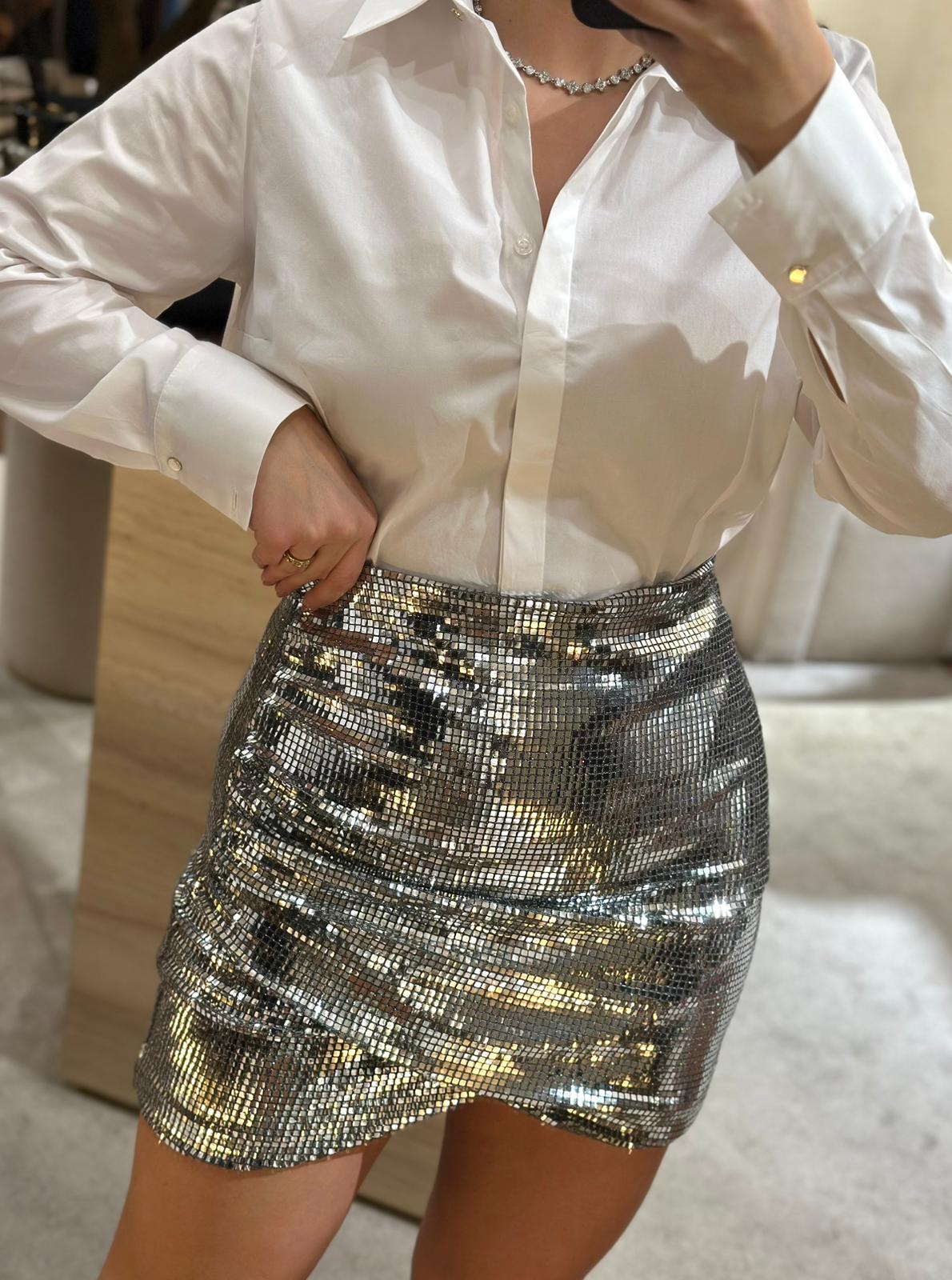 SAIA CURTA PRATEADA DE LANTEJOULAS RINASCIMENTO